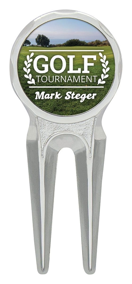 Golf Divot Repair tool includes space for personalised insert for your custom design. Fun way to commemorate your club or tour away. Presented in gift box.