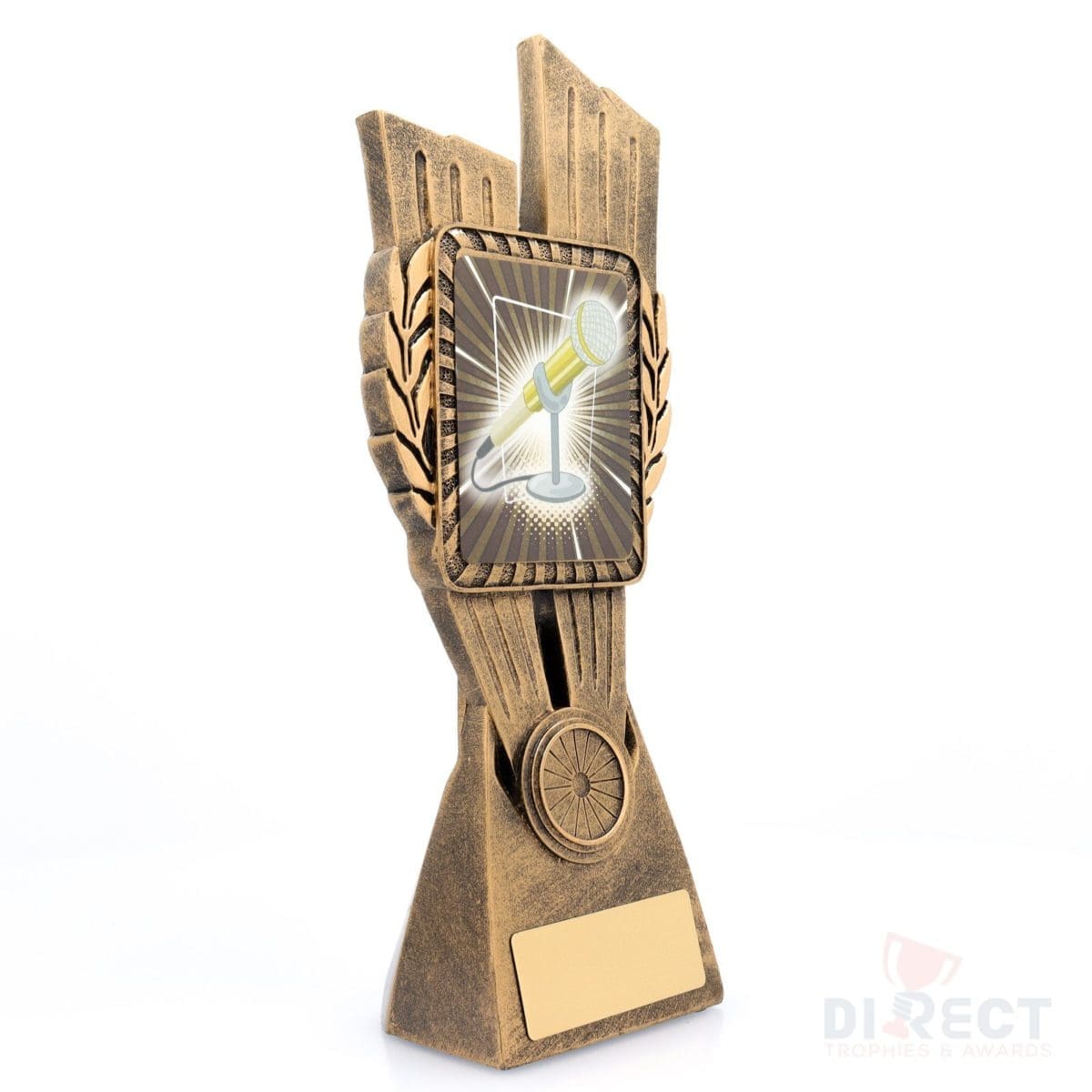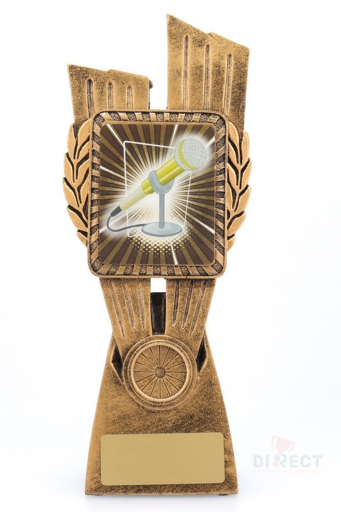 This Antique Gold Lynx Trophy is the perfect education award for public speaking and debating. Featuring a classic wreath and vibrant theme design, this public speaking trophy is customisable and available in 4 impressive sizes. Matching Lynx Medal is also available to complete your selection.