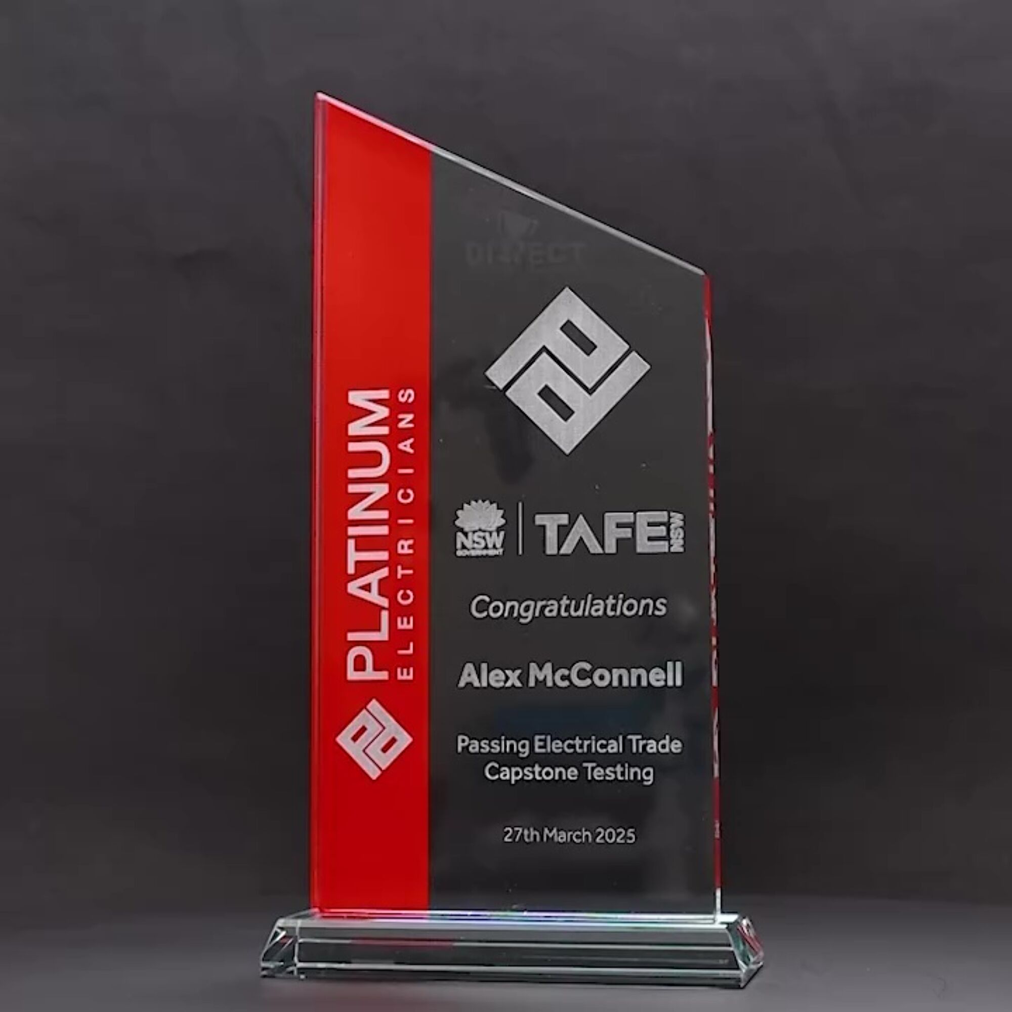Radiance Awards feature a confident peak inspired design – with red coloured glass panels to highlight your engraving requirements. Glass awards are available in 2 great sizes and will be supplied in presentation gift boxes. Consider these trophies if particularly suited to your company or organisation with a red based logo.