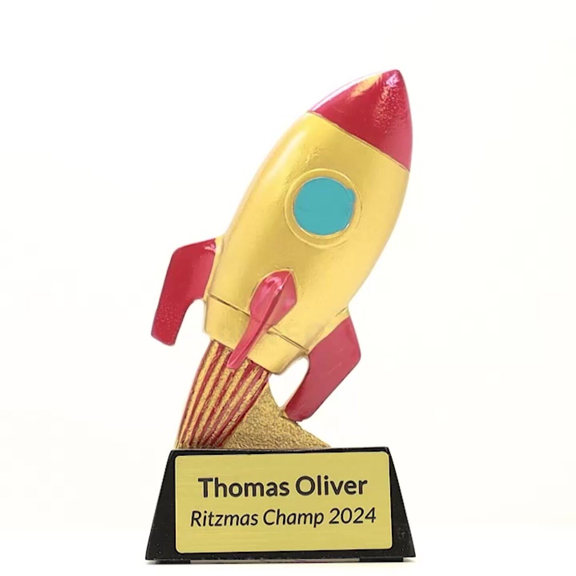Recognise out of this world performances with the golden Rocket Ship trophy.