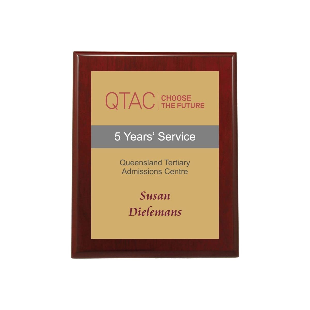 Piano finish plaque in rosewood to enhance your award or presentation. Effective for both sporting and corporate award ideas. 4 sizes available.