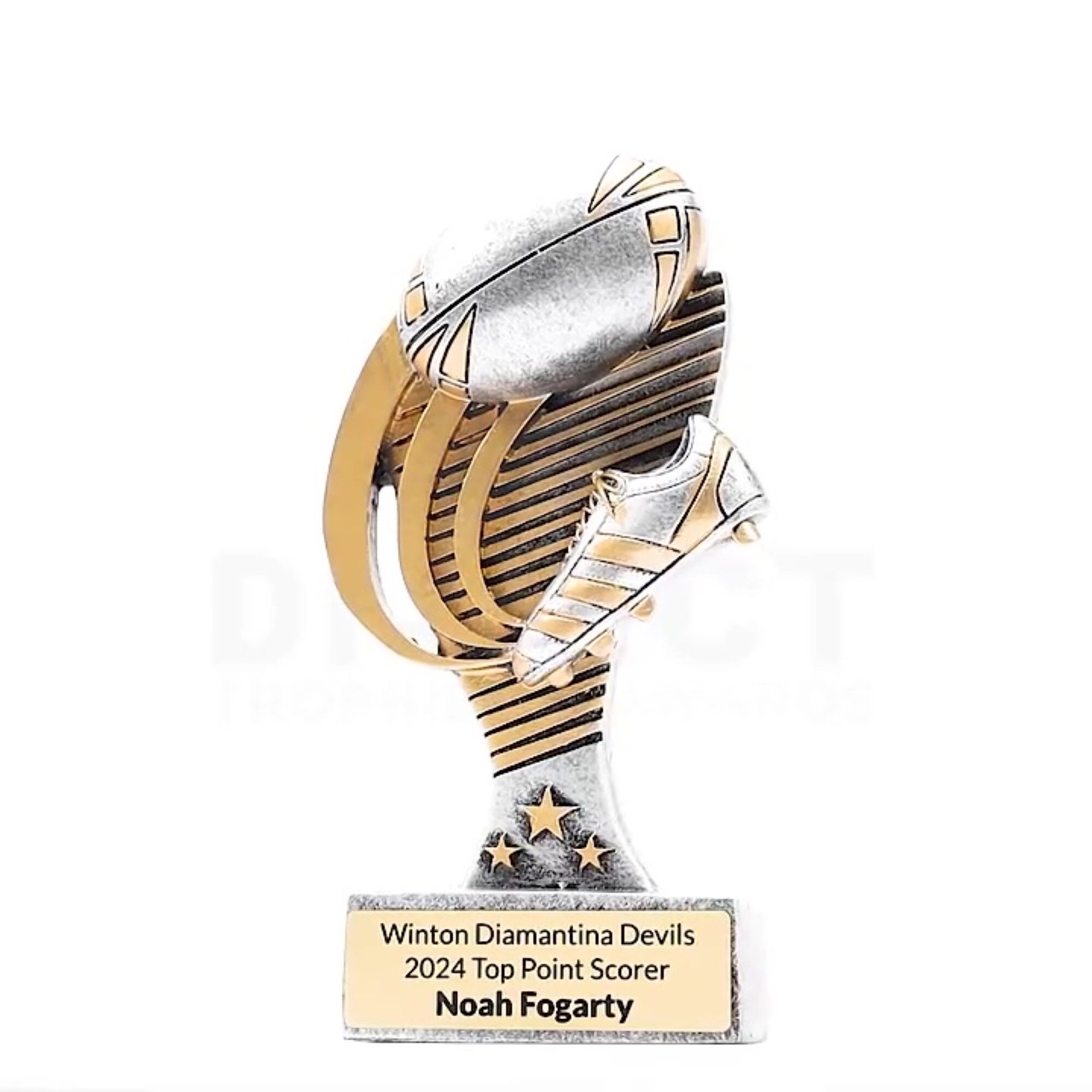 Striking design for your league or union trophies that feature prominent boot and ball elements and finished in classic antique silver and gold colours.