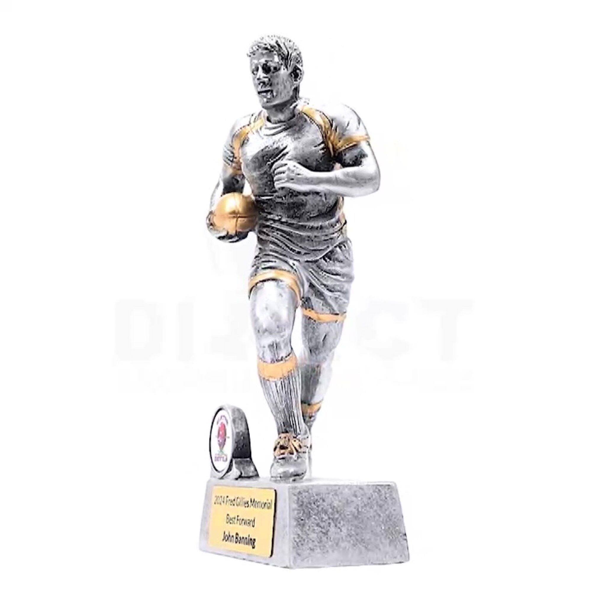 The Icon series for League / Union features an emblematic rugby player in motion and finished in classic antique silver & gold. Trophies in 4 great sizes – and with a female version to make a complimentary pair. Largest selection of trophies, medals and awards.