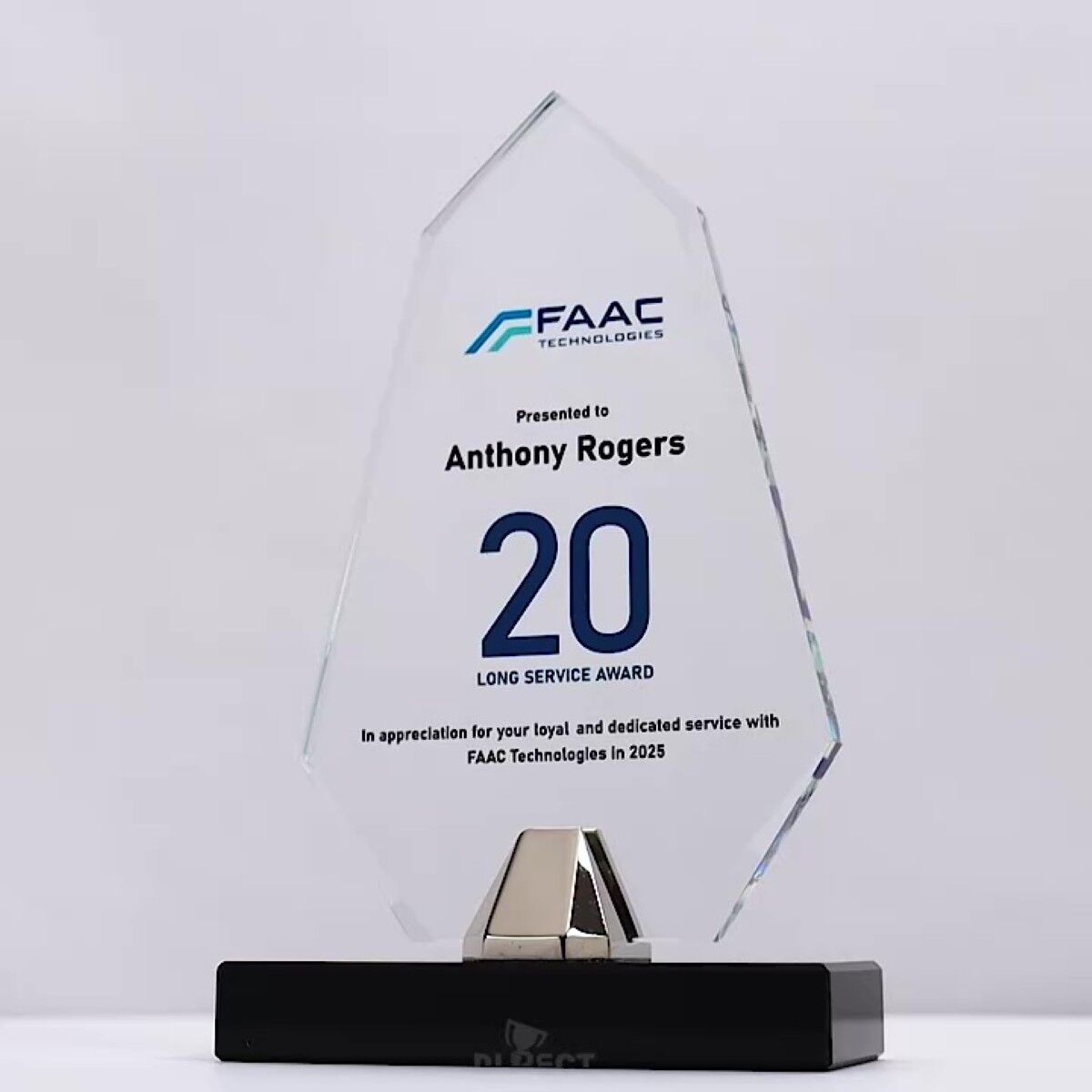 The Sentra Glass Trophy showcases a dynamic arrow-inspired design symbolising peak performance and ambition. Crafted from glass, this award combines striking aesthetics with great value, offering a distinctive choice for recognising excellence. Supplied in a gift box, each trophy includes full colour print to personalise and elevate its presentation.