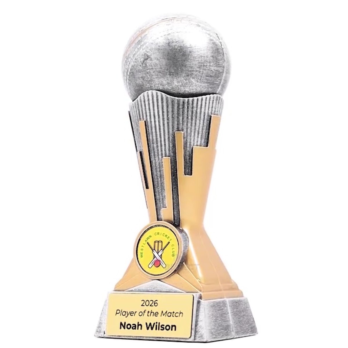 With a bold two-tone silver and gold trim, showcases key sporting elements in a dynamic design. Available in multiple sizes, it features space for your custom logo and includes complimentary laser engraving.