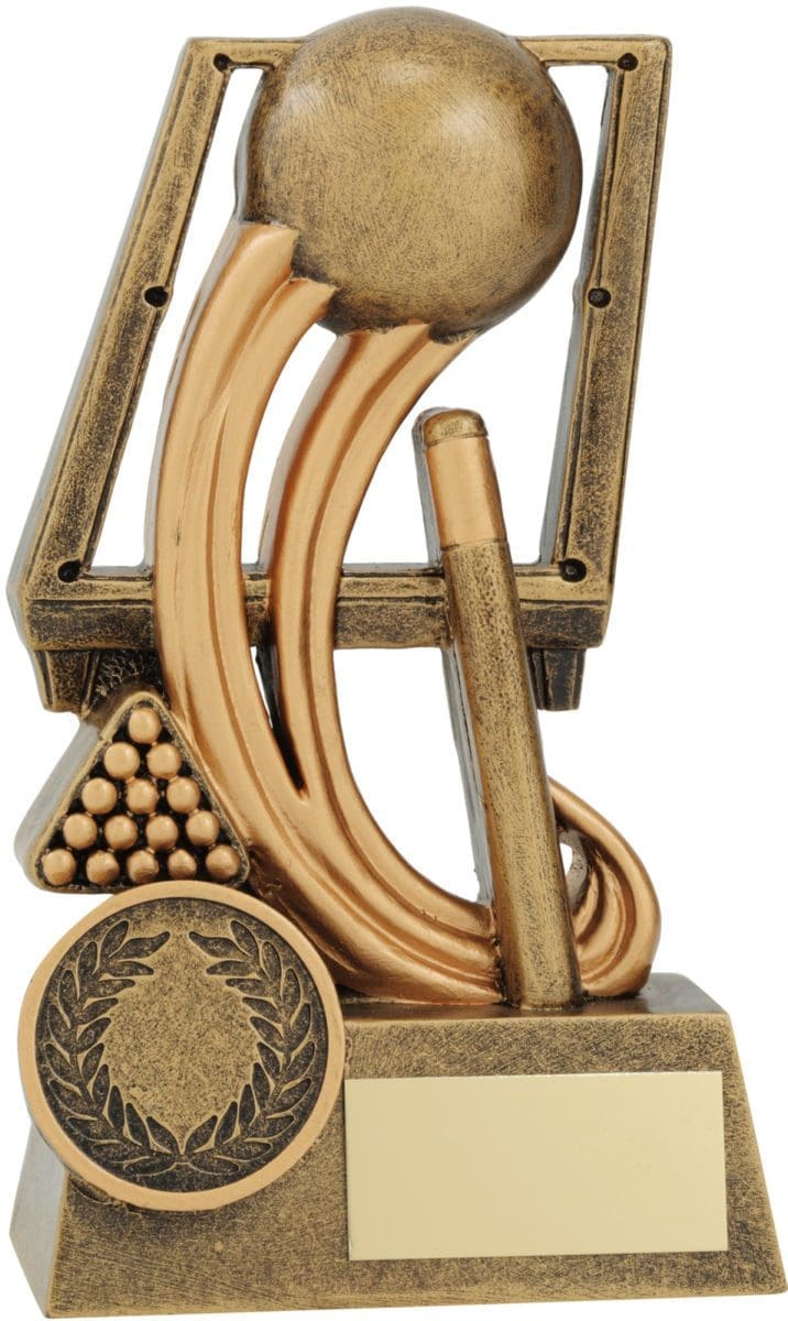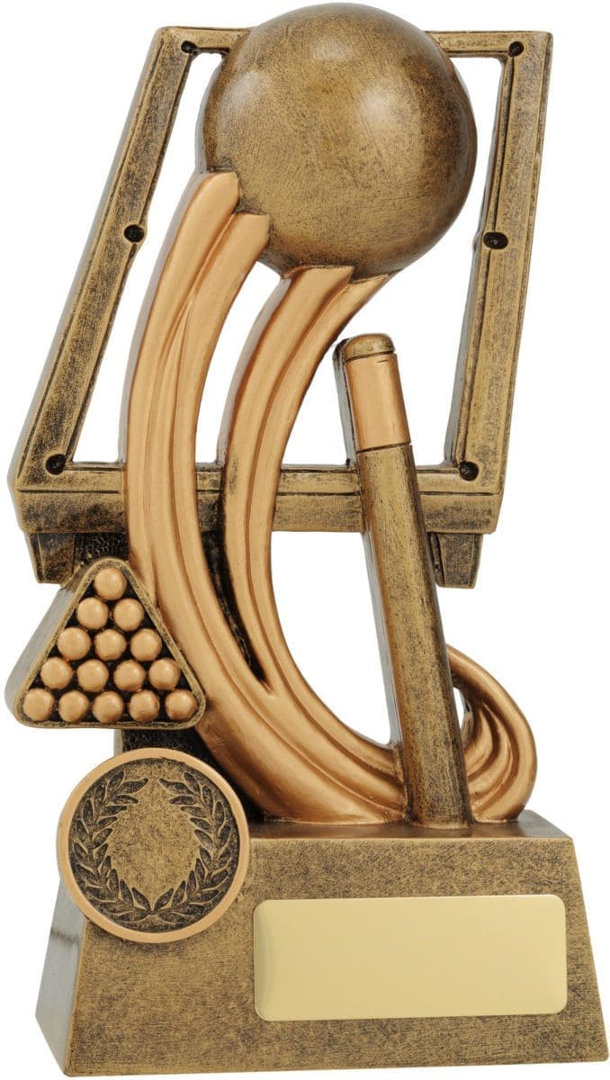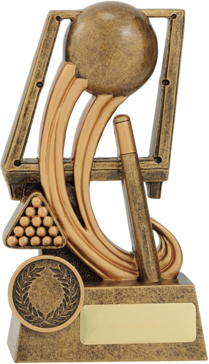 Epic Series in 3 sizes for Snooker & Pool, a stylish design finished in classic gold trophy colours. Epic trophies are an effective award choice for your event or presentation. Space included for a 25mm centre insert if required.
