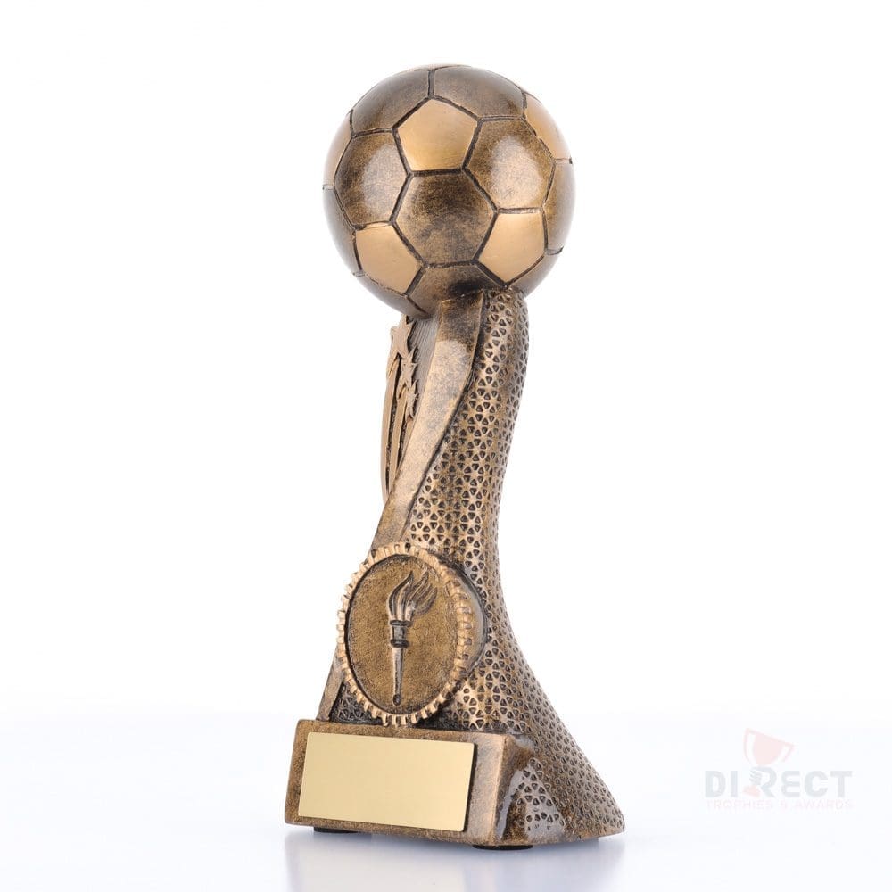 Truly impressive range of sizes for these Football trophies – offering excellent options for budget participation, award recipients and premiership winners. Finished in traditional antique gold, the star inspired design celebrates the game with the prime, central position given to the football.
