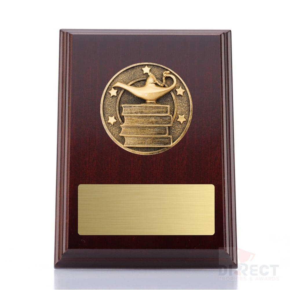 A classic walnut timber plaque with 2D Spartan activity front accompanied with a european gold plate showcasing black text engraving. Plaque includes silver screw on stand for display. Free Engraving included.