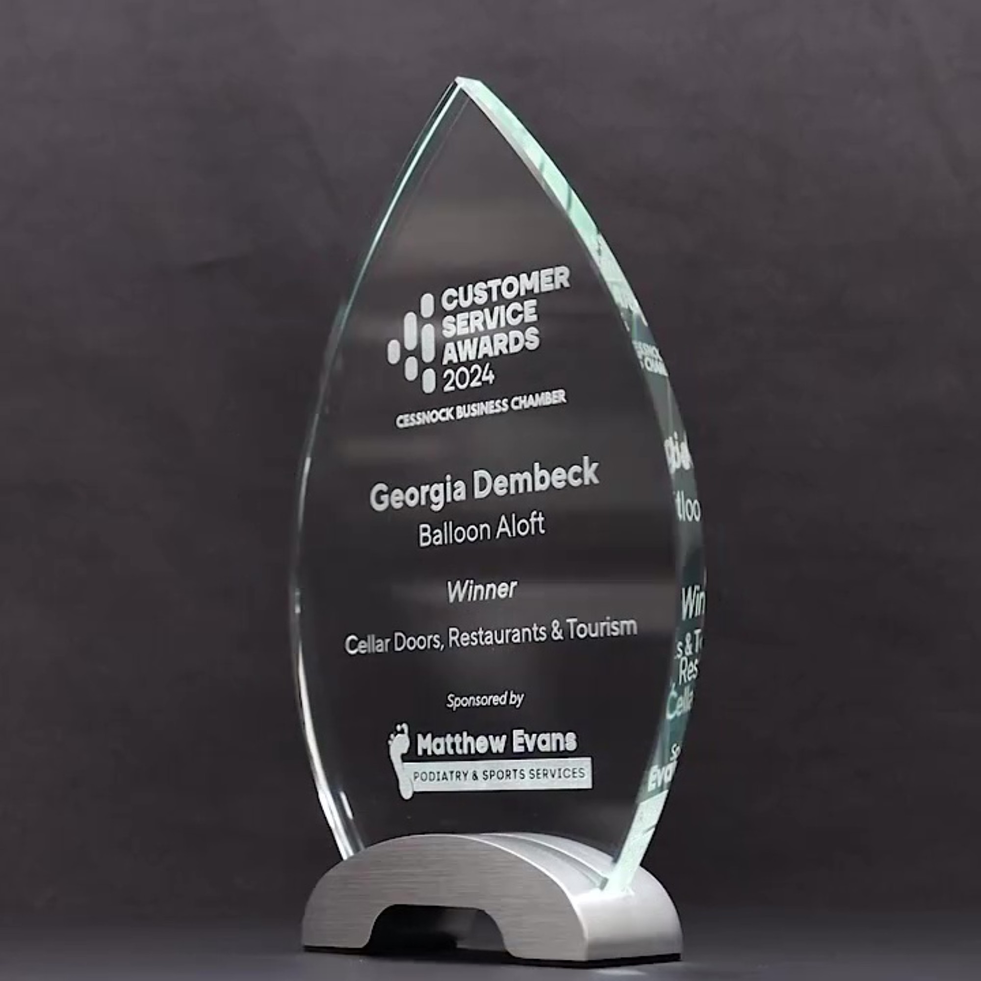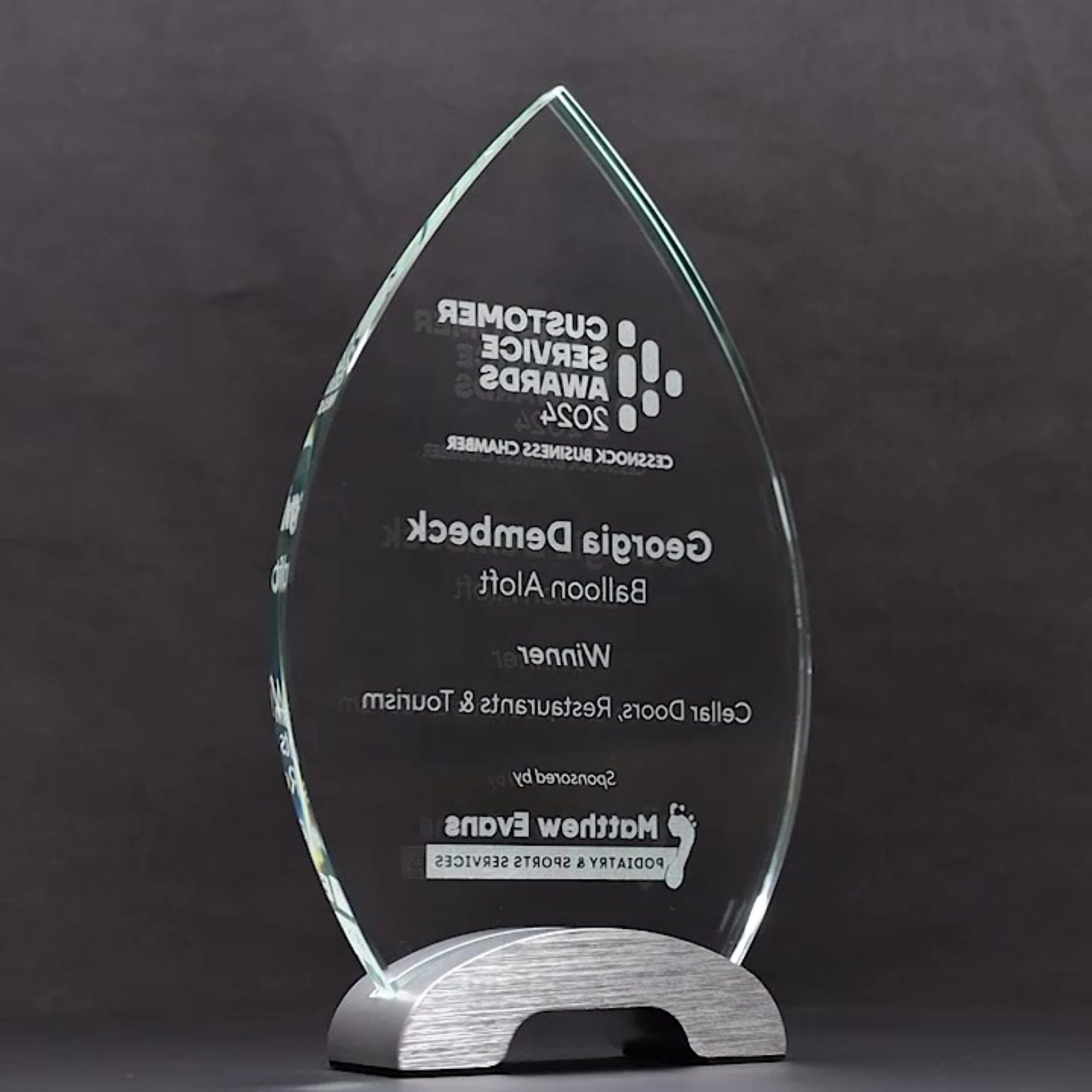 Spectra Glass Series Trophy: A timeless glass design set on a sleek brushed silver base, the Spectra Series offers an affordable yet stylish award option. Supplied in a gift box with complimentary laser engraving included.
