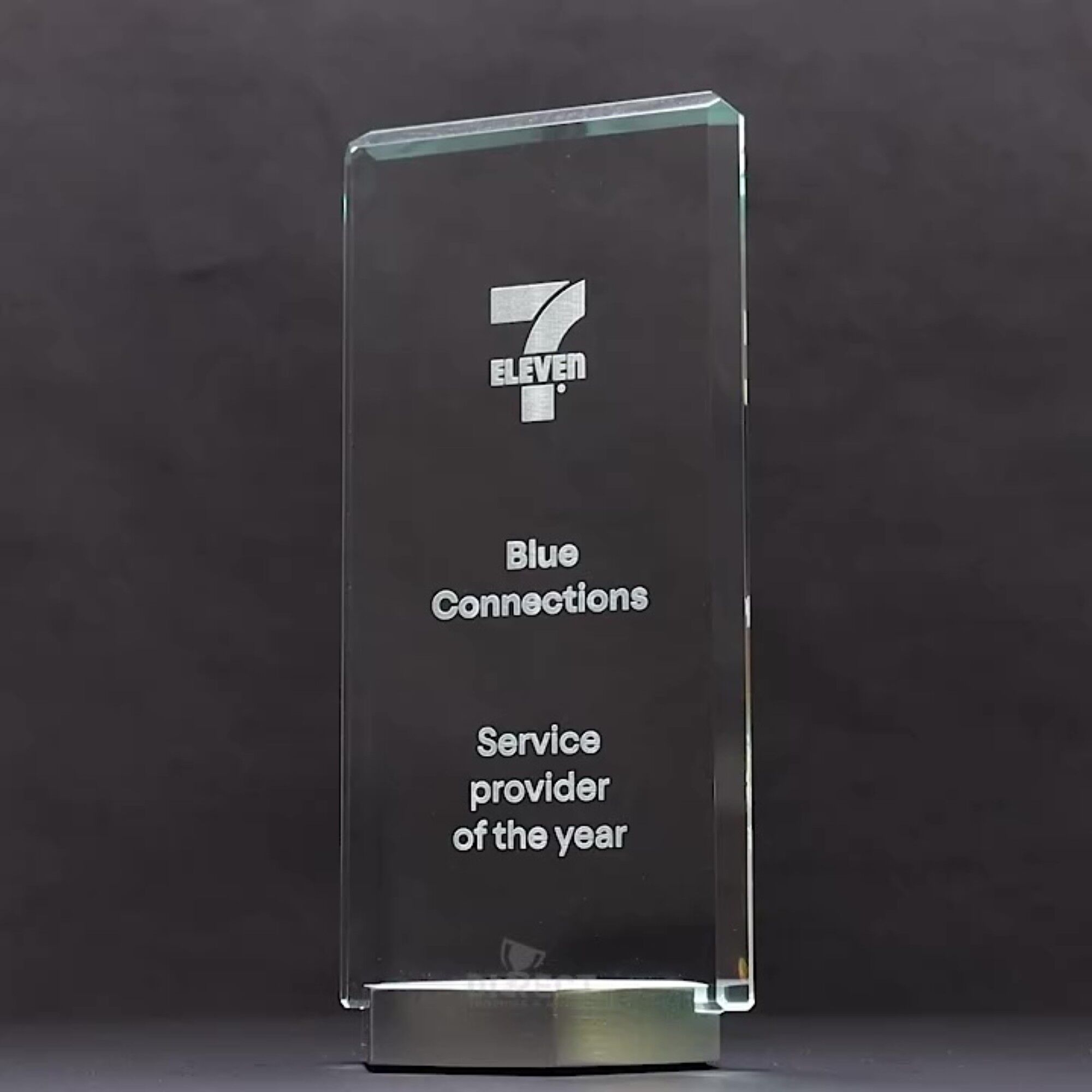 Spectra Glass Series Trophy: A timeless glass design set on a sleek brushed silver base, the Spectra Series offers an affordable yet stylish award option. Supplied in a gift box with complimentary laser engraving included.