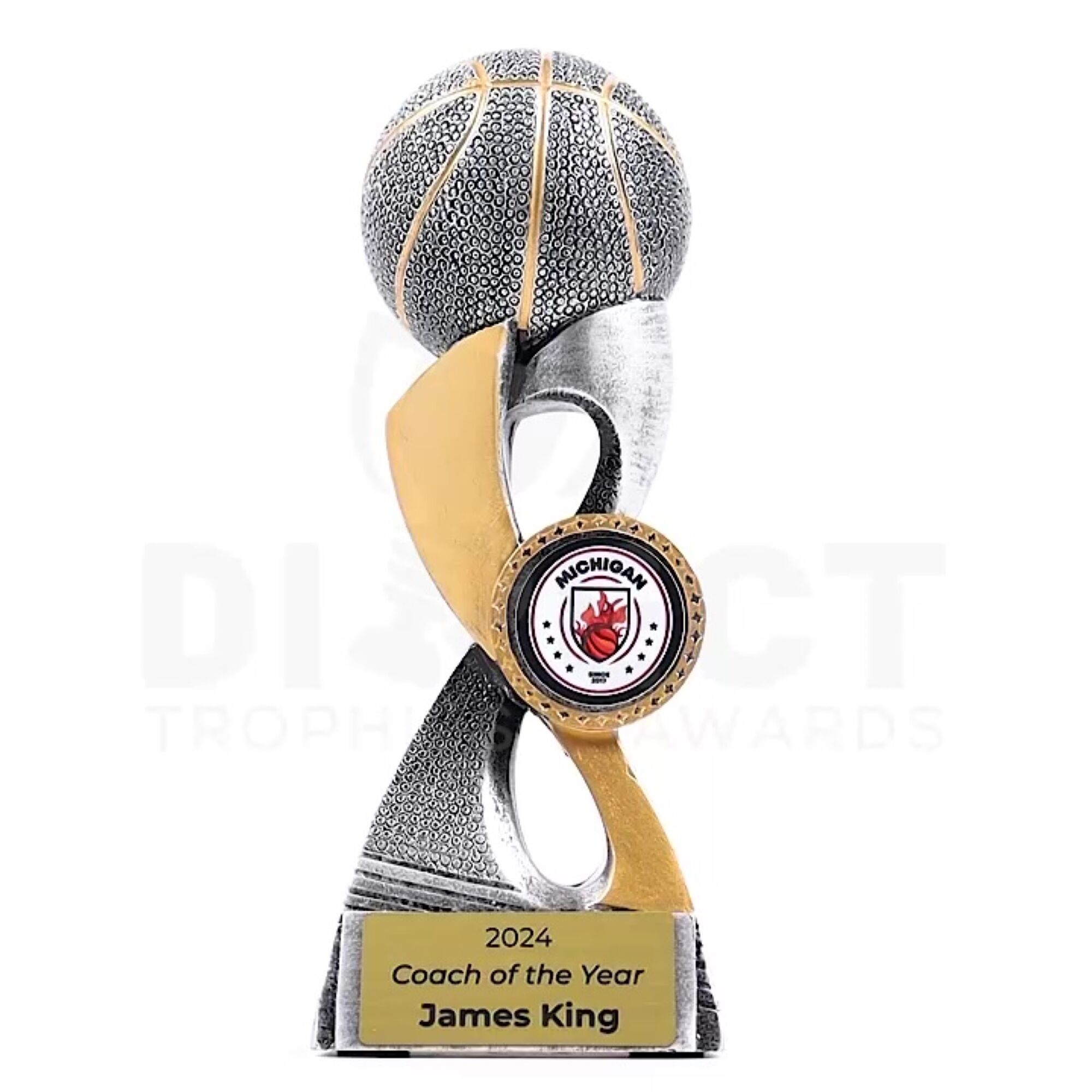 Splendid Series Ball Holder Trophy: Celebrate recognition with the Splendid Series Ball Holder Trophy, featuring a sports icon atop an antique silver-accented design. Ideal for participation awards, with space for your custom image and complimentary laser engraving.