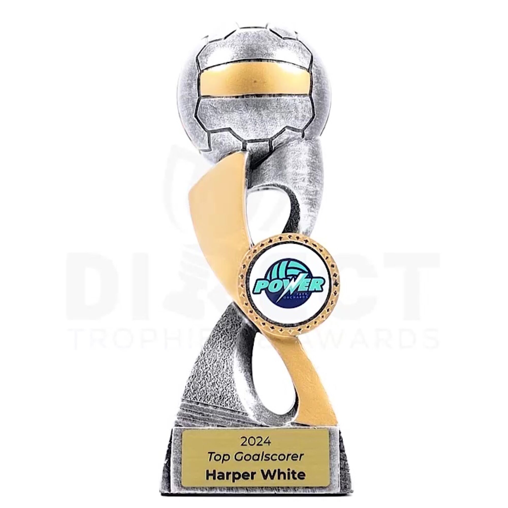 Splendid Series Ball Holder Trophy: Celebrate recognition with the Splendid Series Ball Holder Trophy, featuring a sports icon atop an antique silver-accented design. Ideal for participation awards, with space for your custom image and complimentary laser engraving.