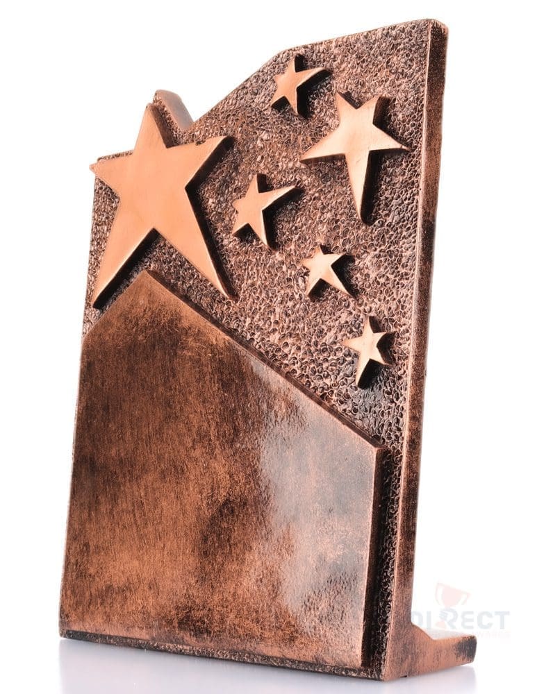 A substantial plaque style trophy that features distinctive star elements. Ample space for your engraving requirements.