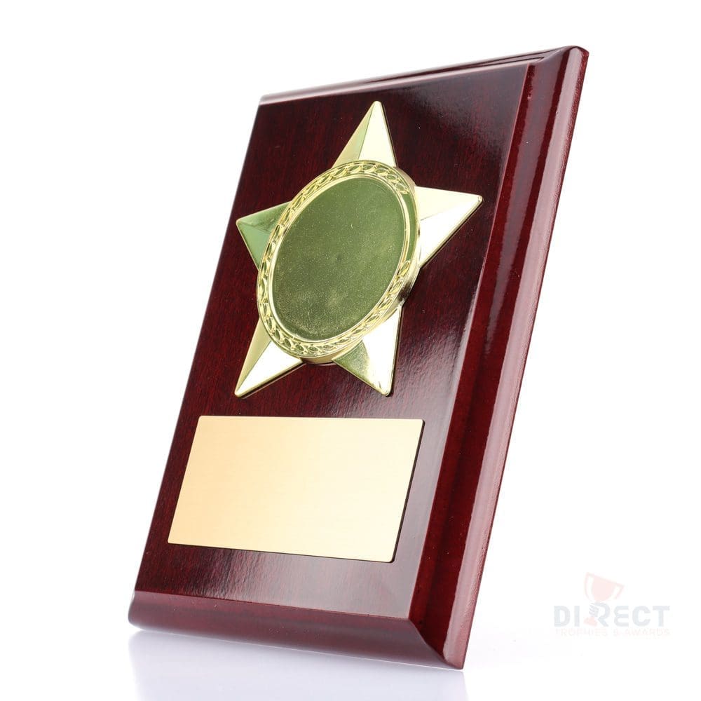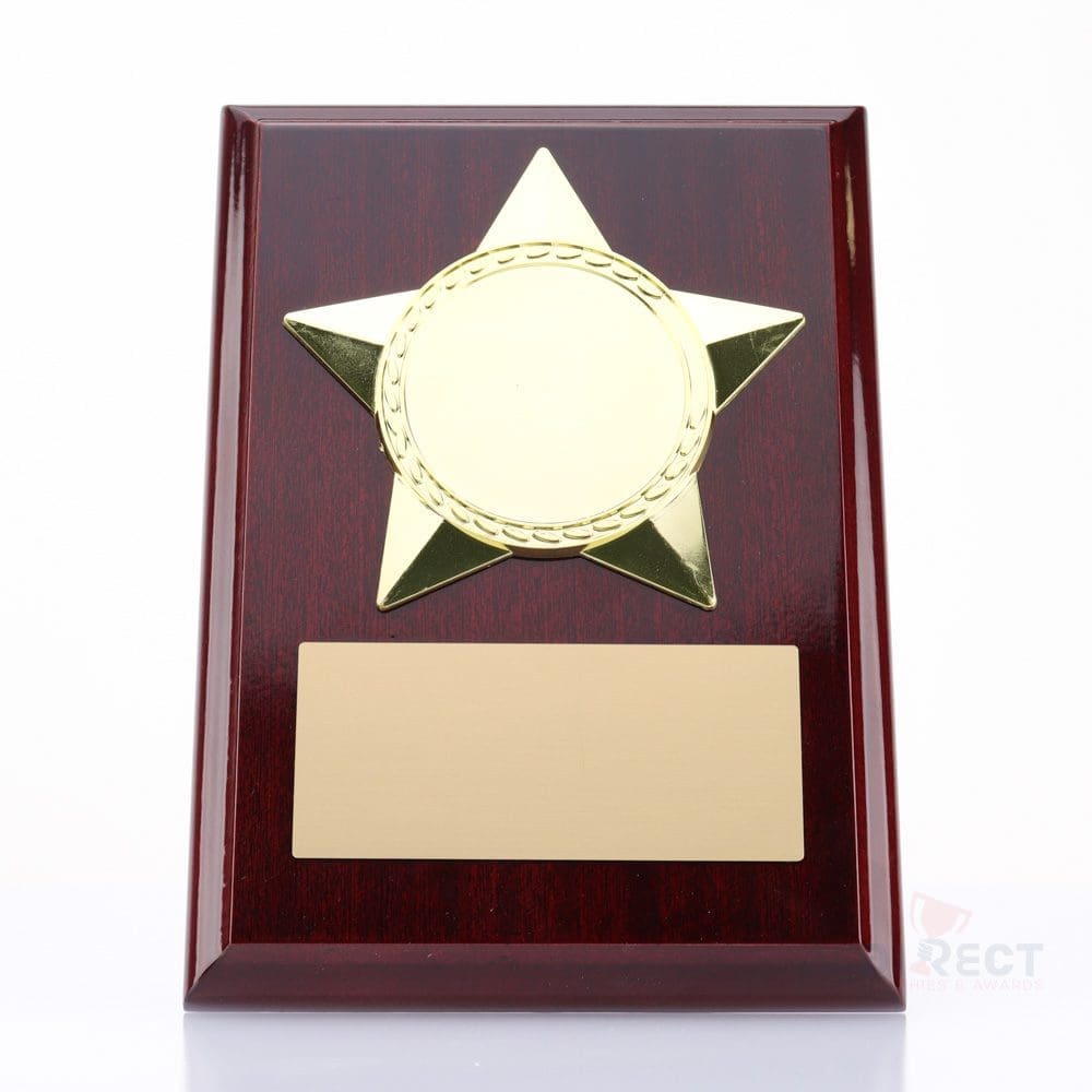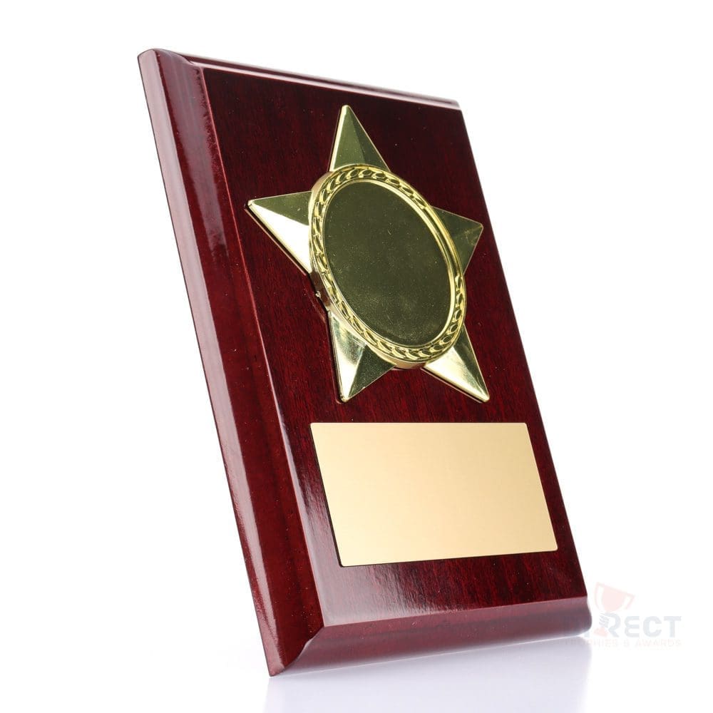 Star Plaques in gloss Rosewood finish include standout star holder to frame your custom logo.
