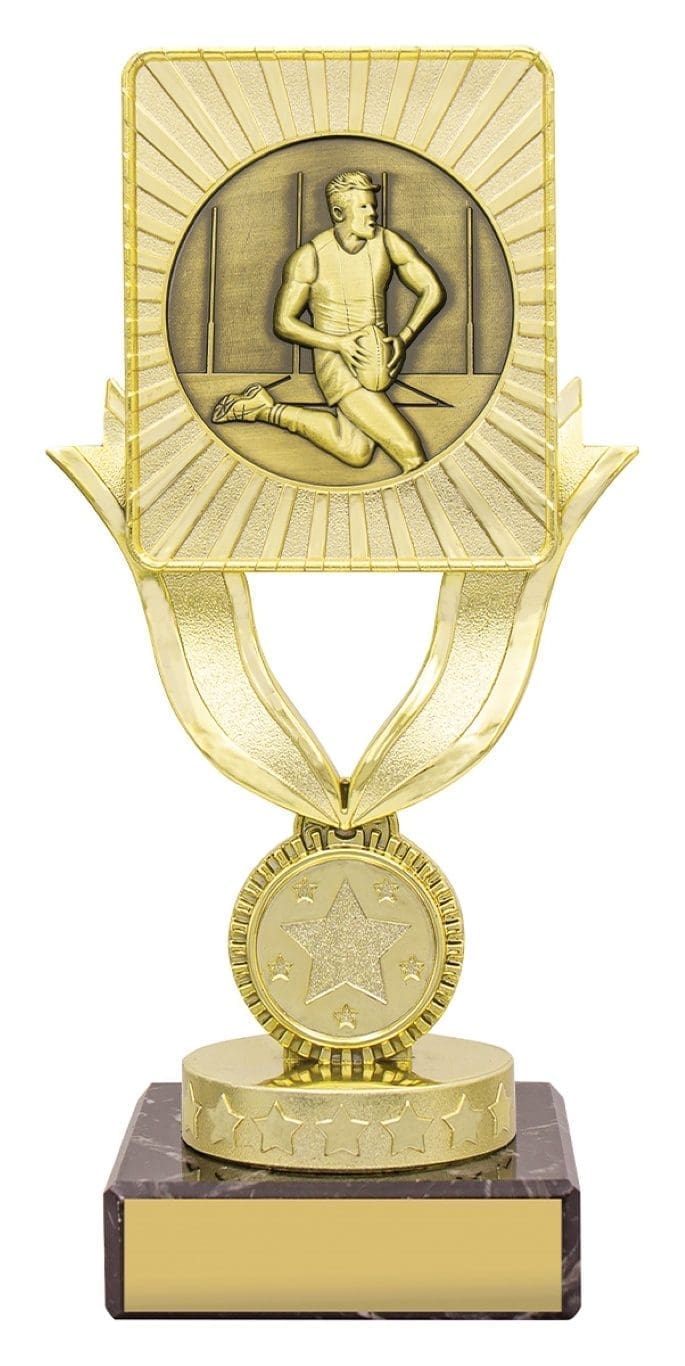 Introducing the Stealthcrest Aussie Rules Male Trophy, a fantastic series of trophies with a sleek combination of gold and black colors. These trophies feature a unique design that adds a touch of elegance to your awards. Customize them with free laser engraving for a personalized touch.