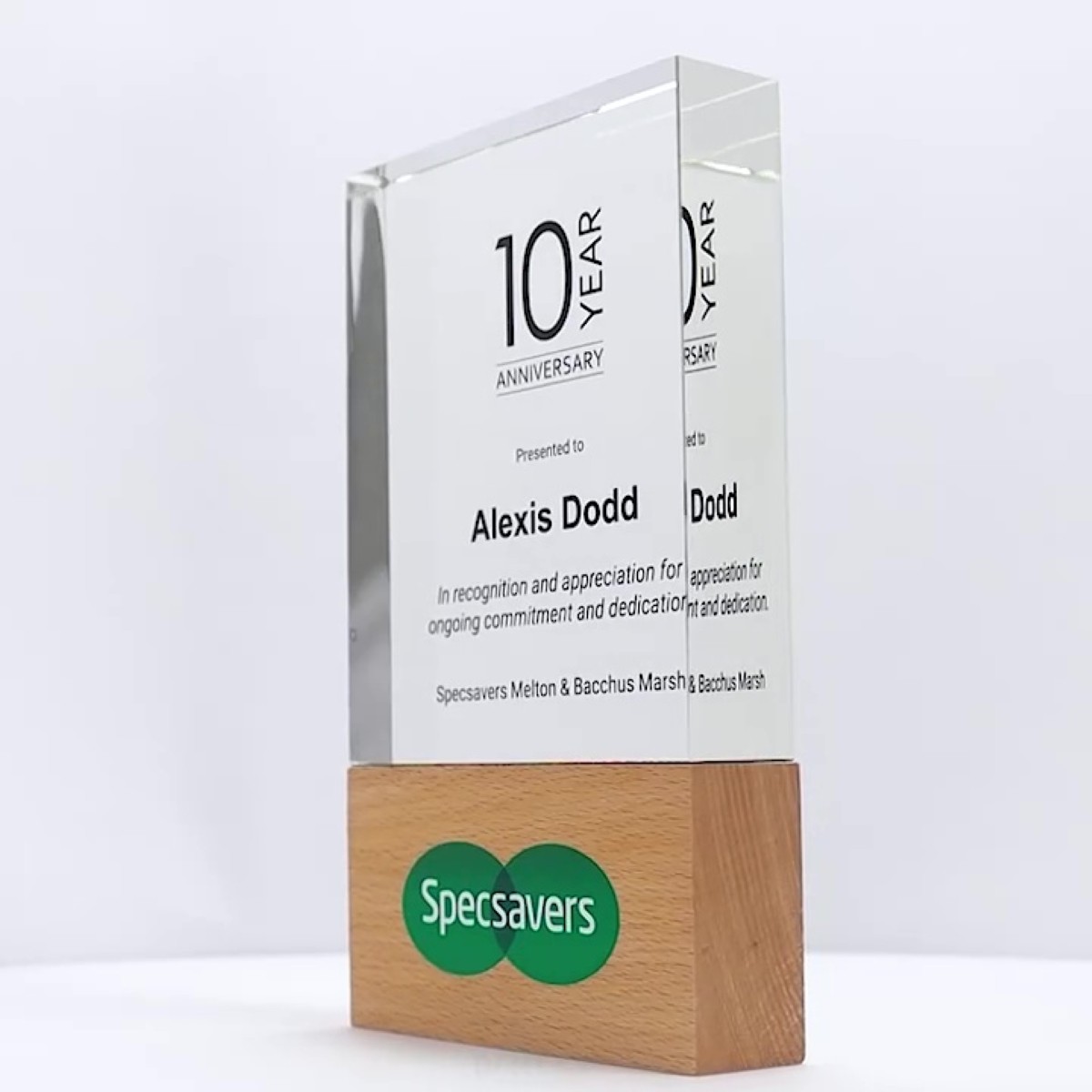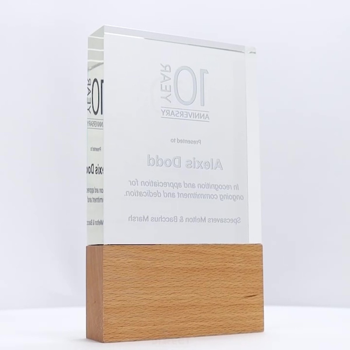 The Stratos Crystal Wood Trophy presents a strong, streamlined design combining crystal and wood, providing generous space for your customisation needs. Delivered in an elegant gift box, complete with full colour print.