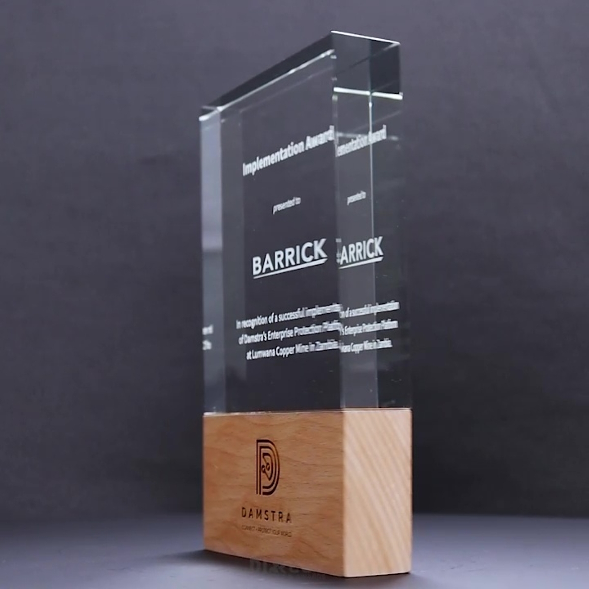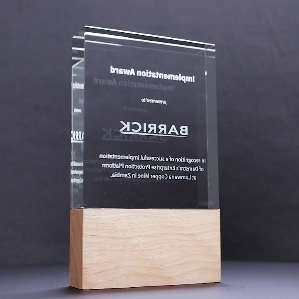 The Stratos Crystal Wood Trophy presents a strong, streamlined design combining crystal and wood, providing generous space for your customisation needs. Delivered in an elegant gift box, complete with laser engraving.