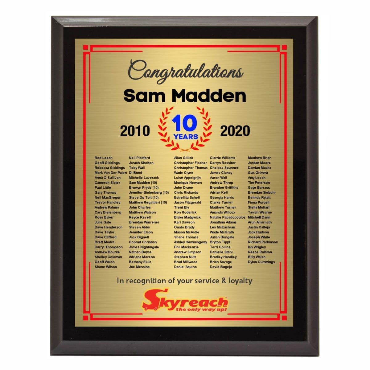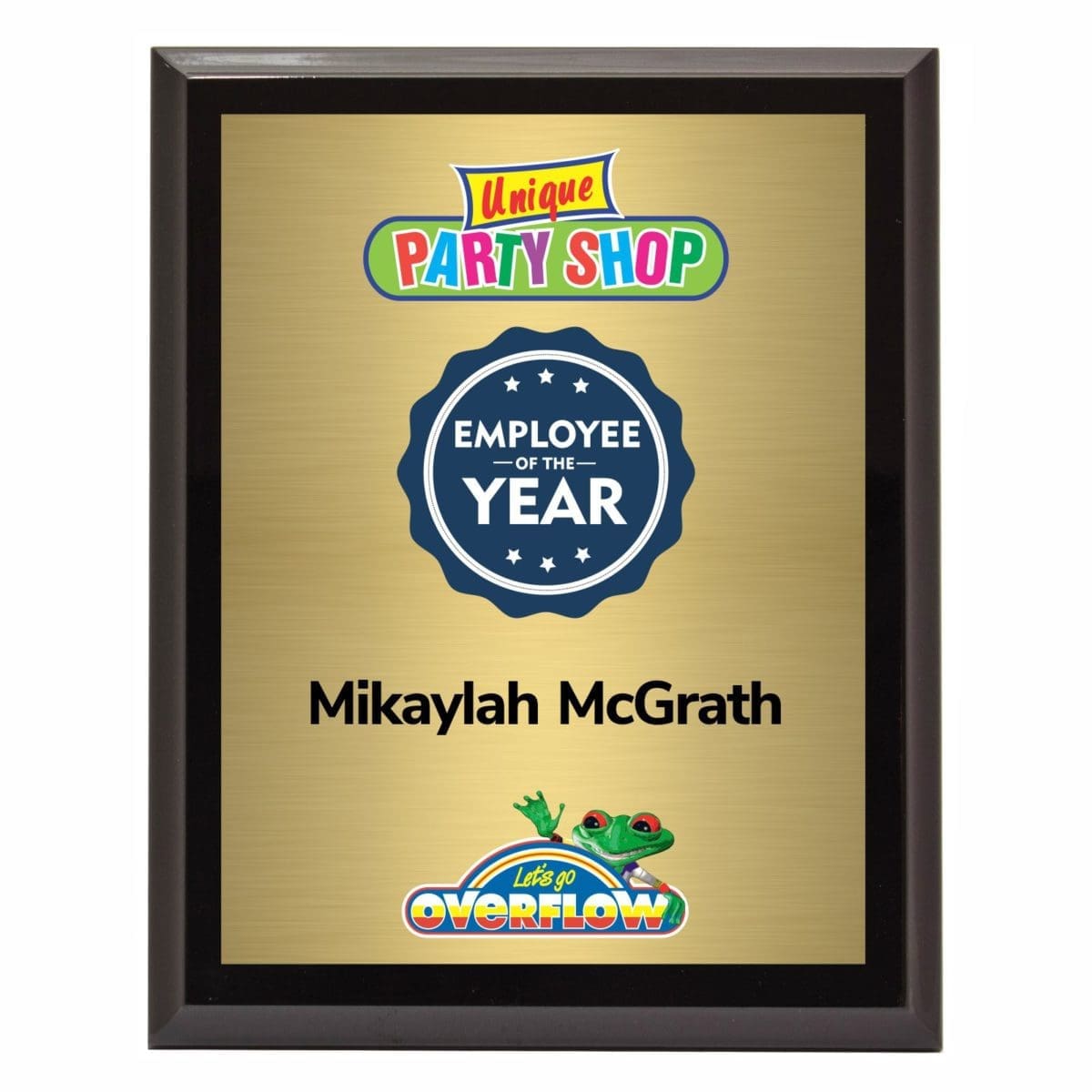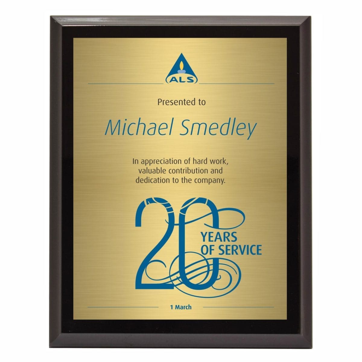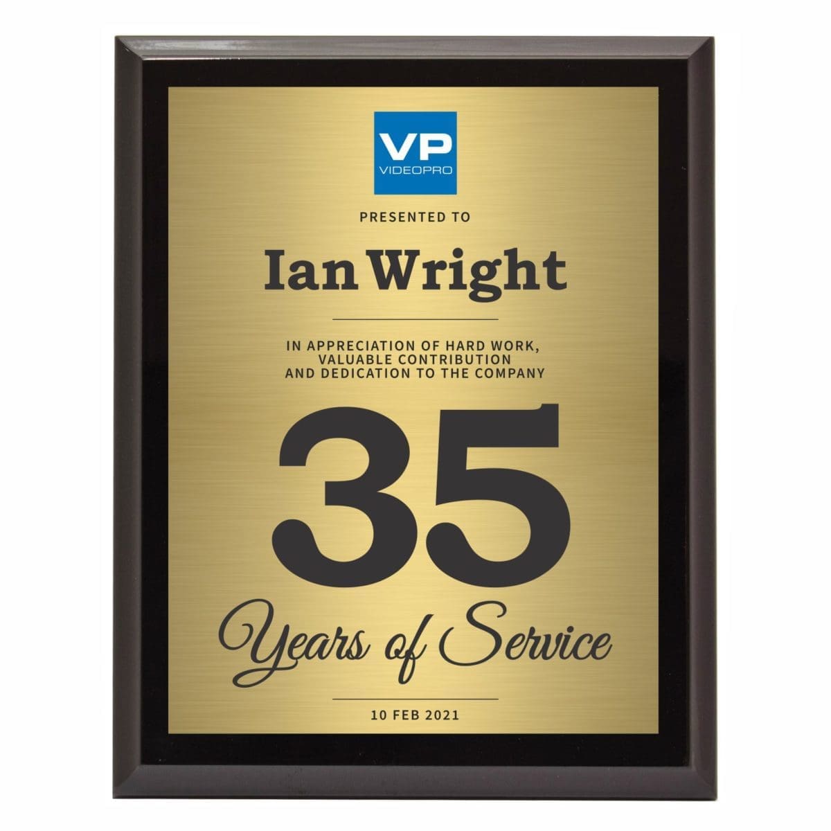 Corporate colour printed plaque with extra glossy finish for that premium award in different sizes. Comes in a black presentation case and metal back-stands.