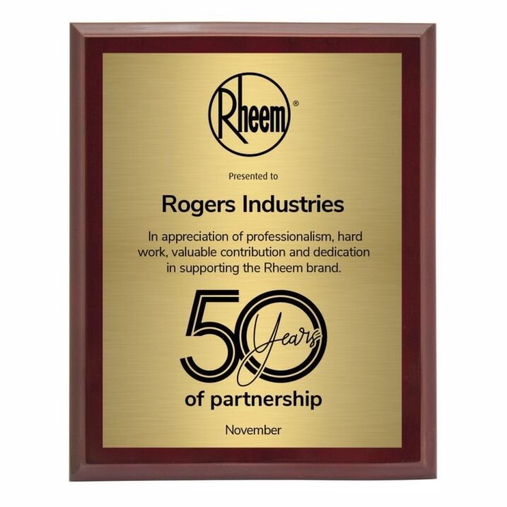 Corporate engraved plaque with extra glossy finish for that premium award in different sizes. Comes in a black presentation case and metal back-stands.