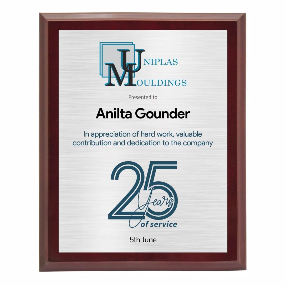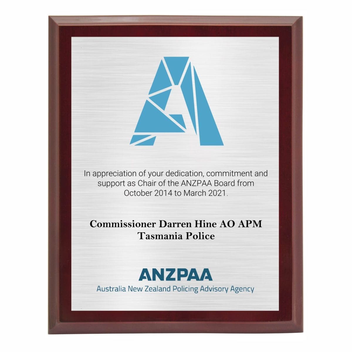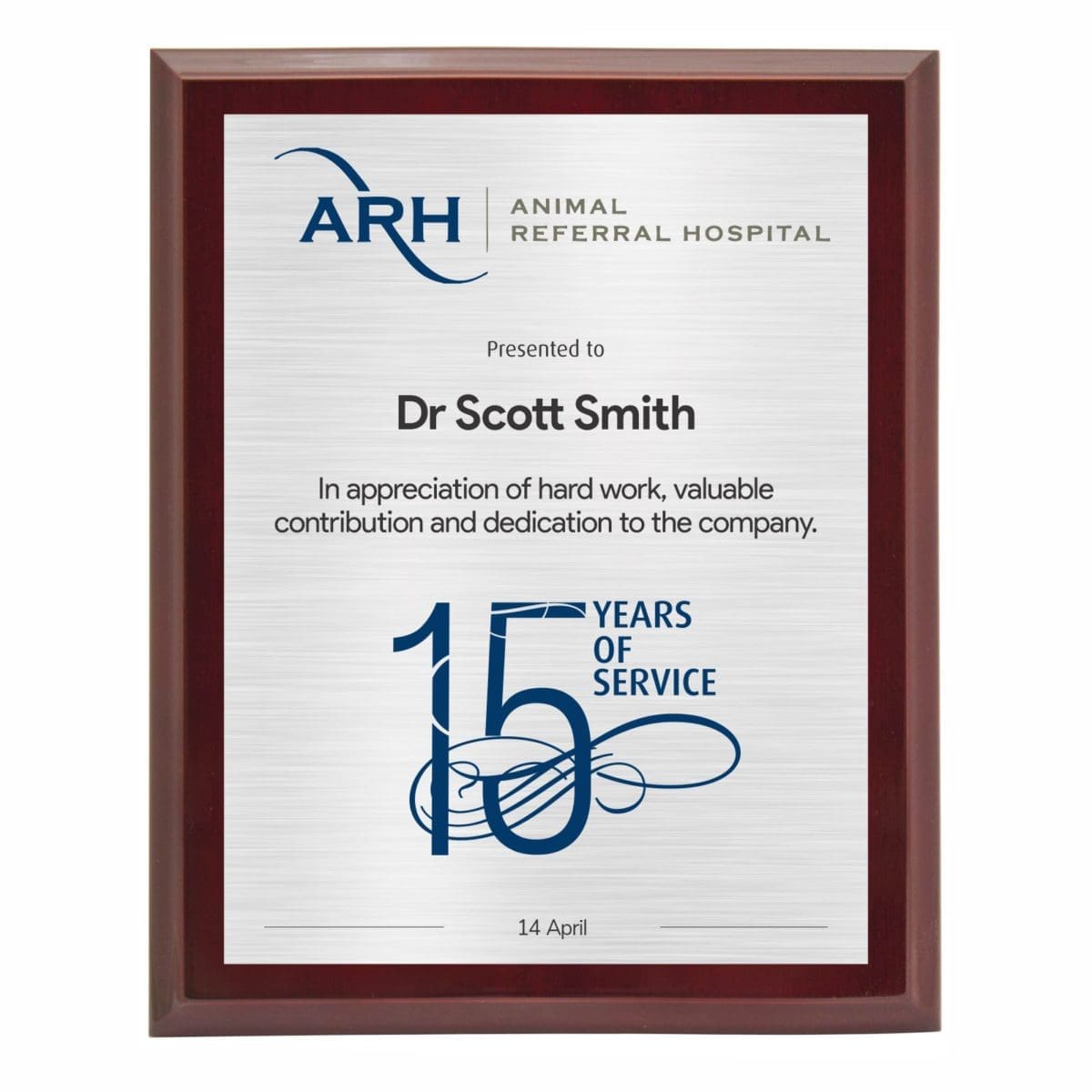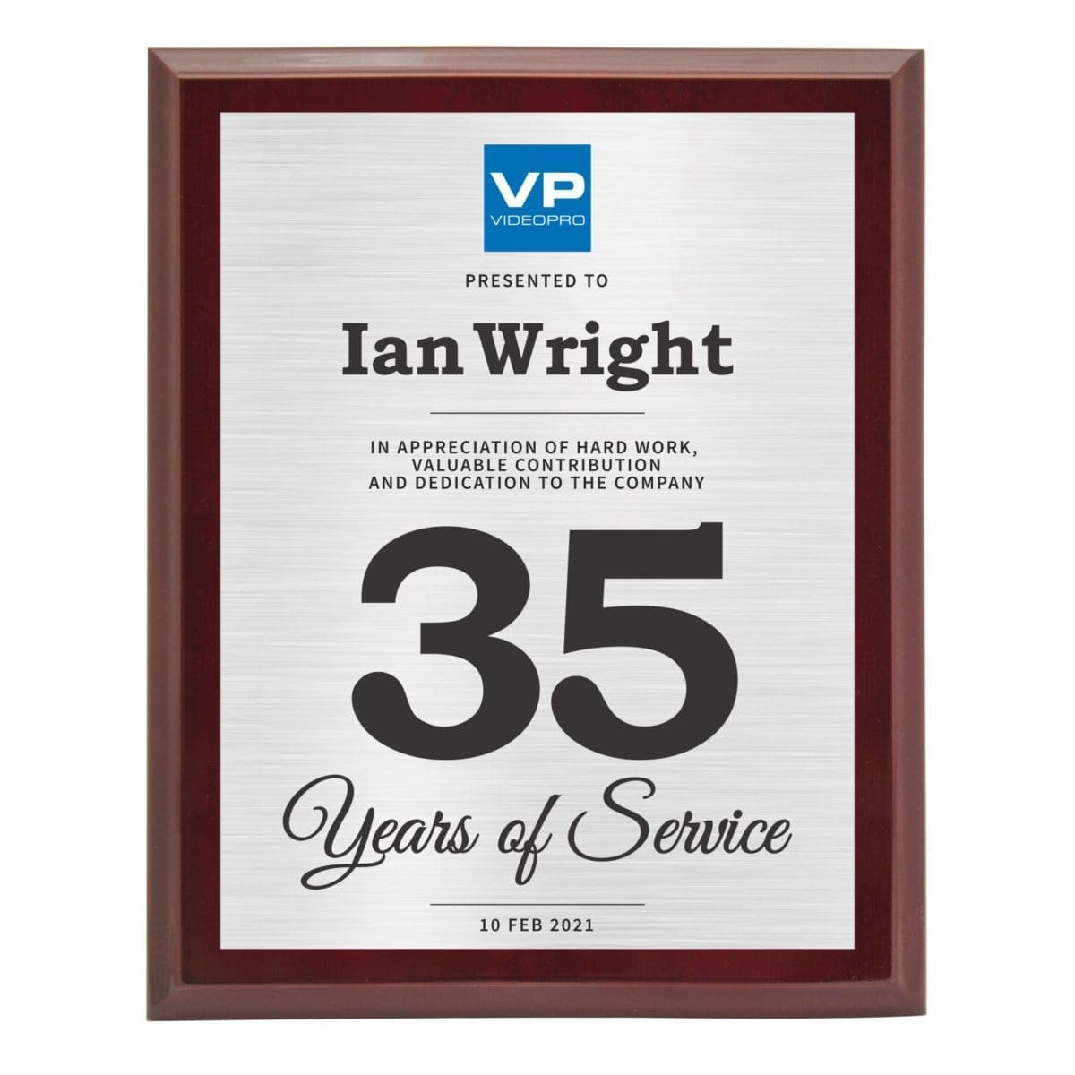 Corporate colour printed plaque with extra glossy finish for that premium award in different sizes. Comes in a black presentation case and metal back-stands.