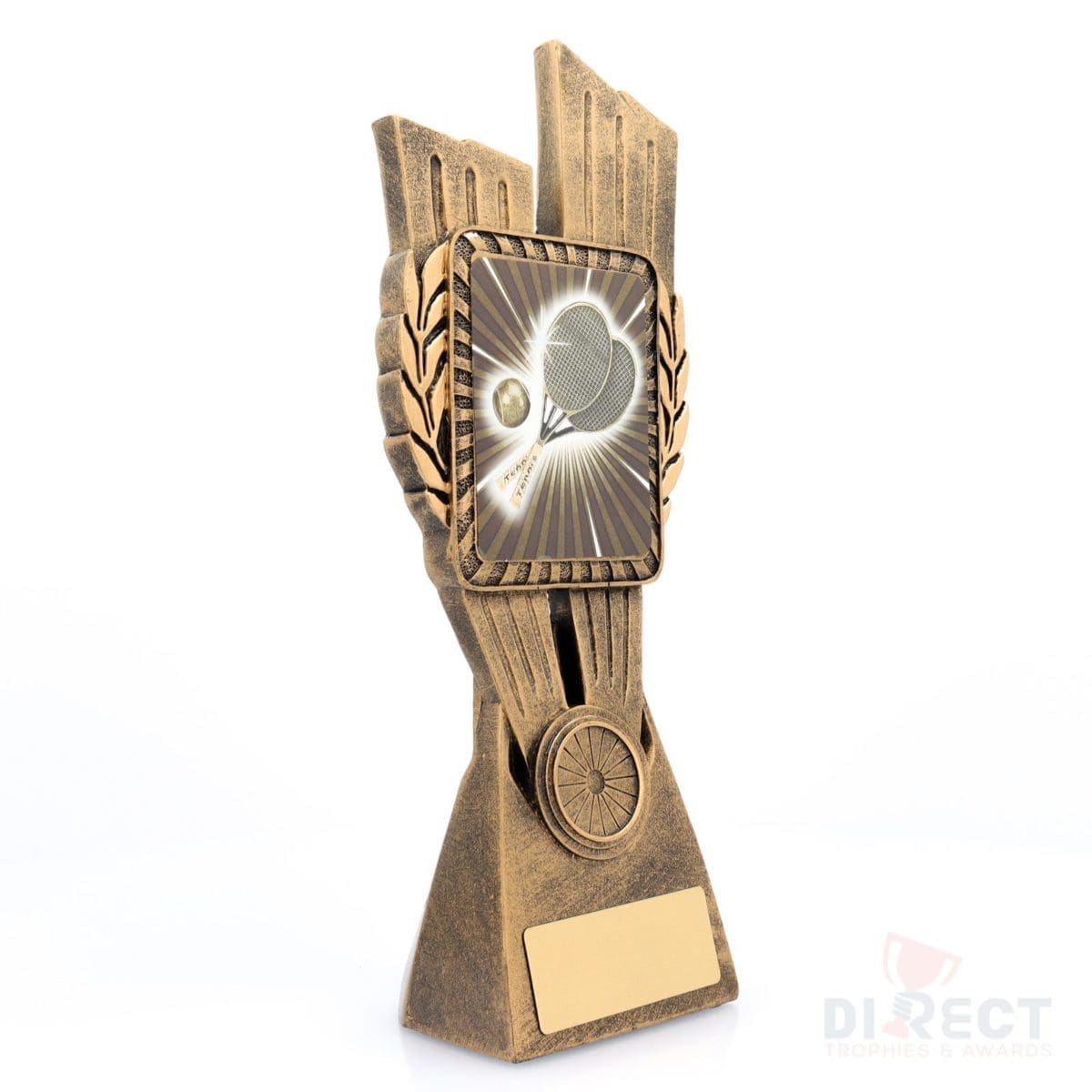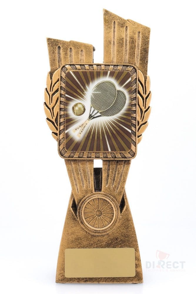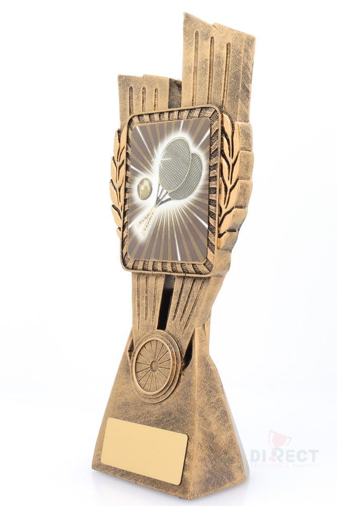 This Antique Gold Lynx Trophy is the perfect award for your Tennis events & activities. Featuring a classic wreath and vibrant theme design, this trophy is customisable and available in 4 impressive sizes.