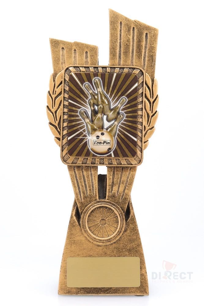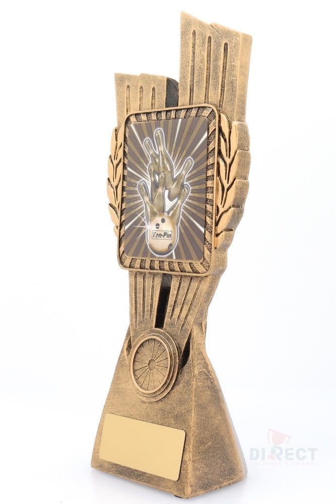 This Antique Gold Lynx Trophy is the perfect award for your Tenpin events & activities. Featuring a classic wreath and vibrant theme design, this trophy is customisable and available in 4 impressive sizes.