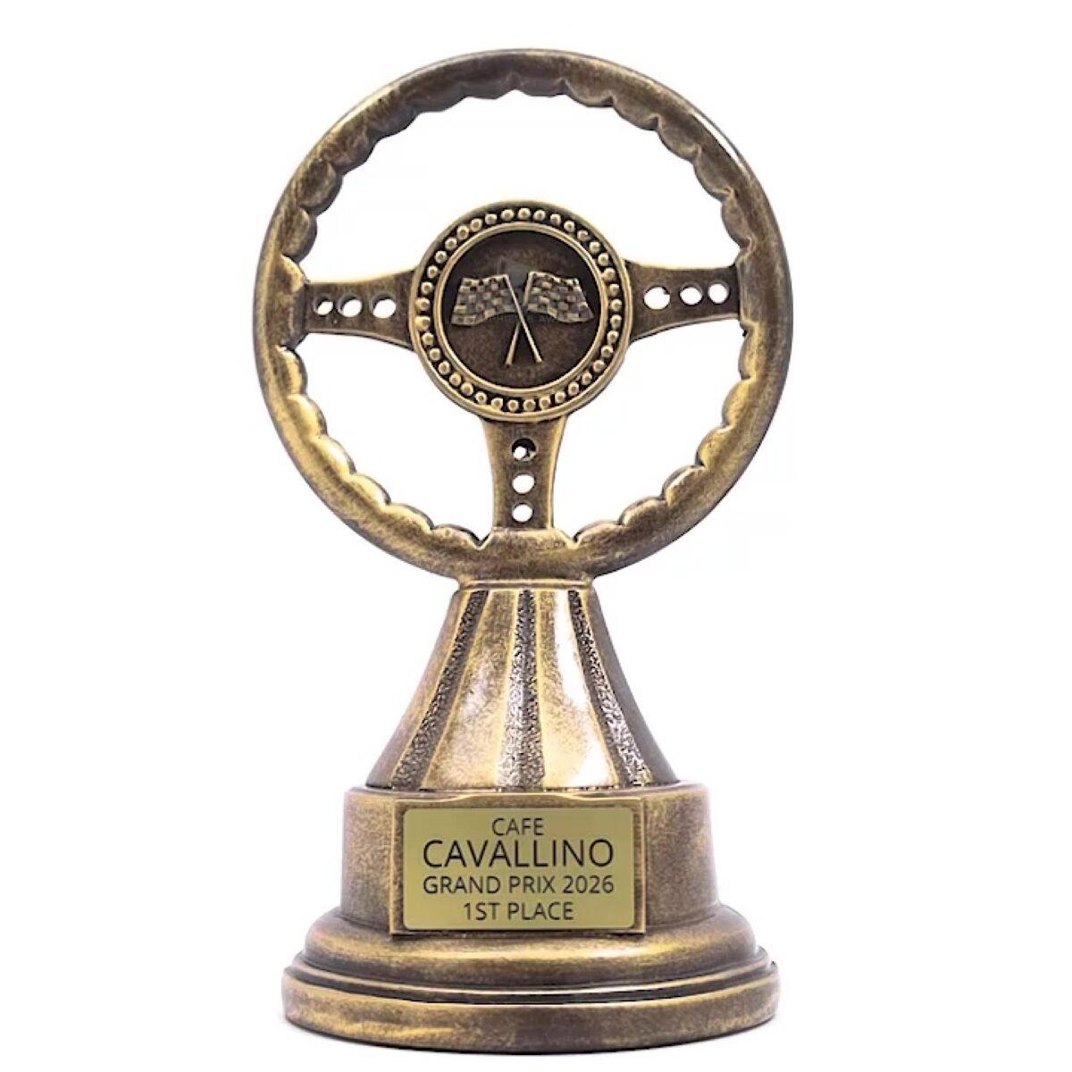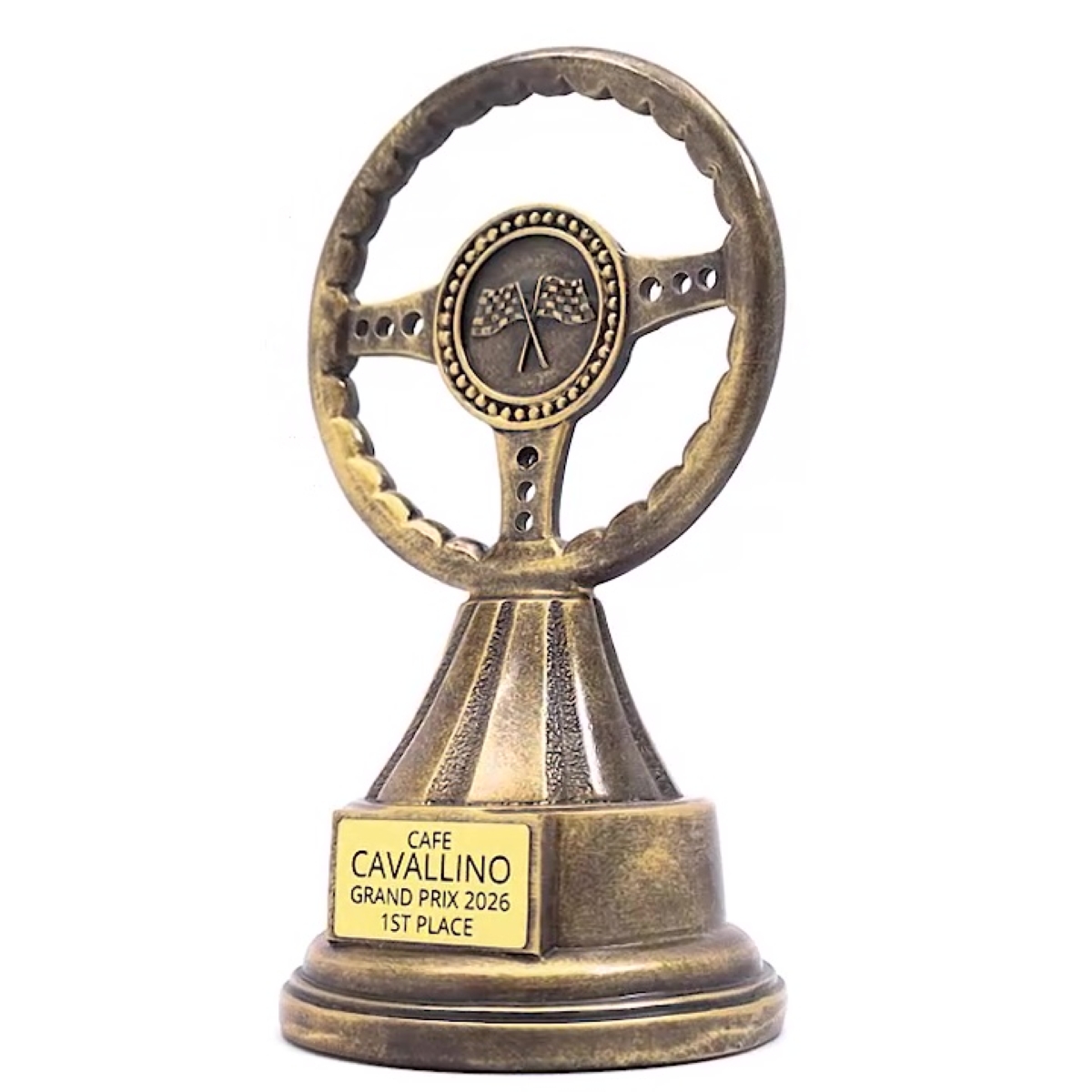 Huge award – celebrating that central motorsport element of the wheel – very well suited to various motorsport and car enthusiast events and competition.