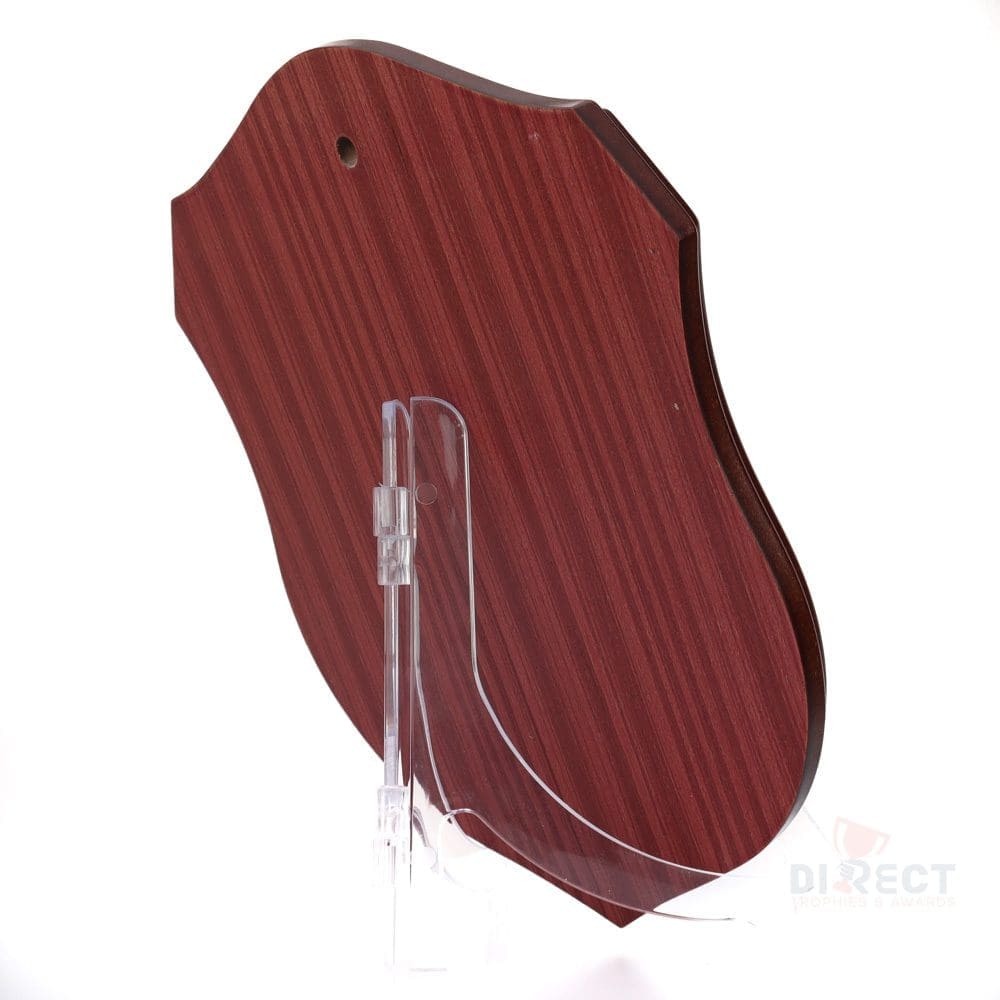 Classic series of timber shield in walnut finish. Supplied with plate and header setup as per layout shown. Engraving on ribbon plate included.