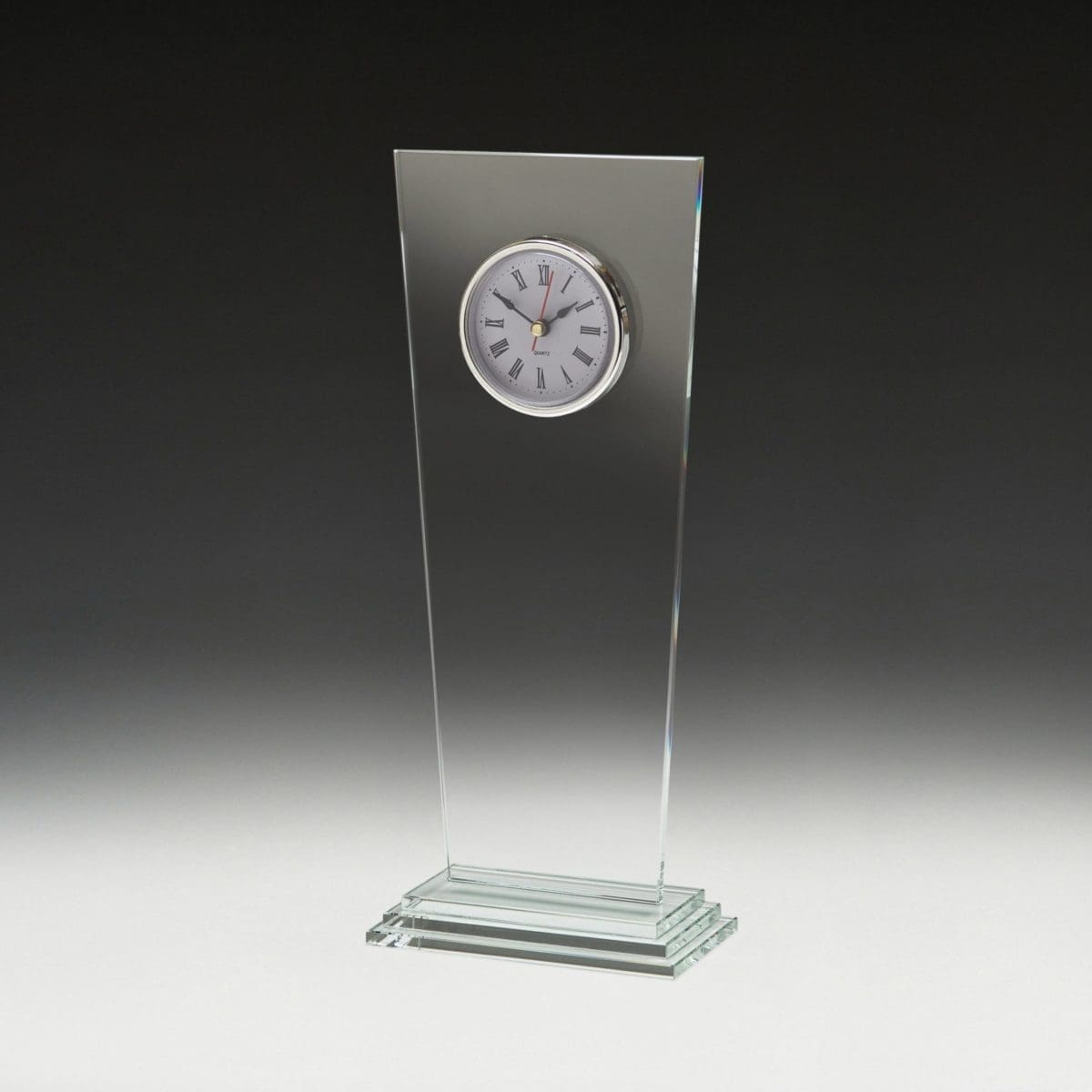 Topmost Glass Clock in clear glass and presentation gift box. At an impressive height, this clock award makes a truly unique trophy option for your presentation event. Large selection of clocks to satisfy your particular award requirements.