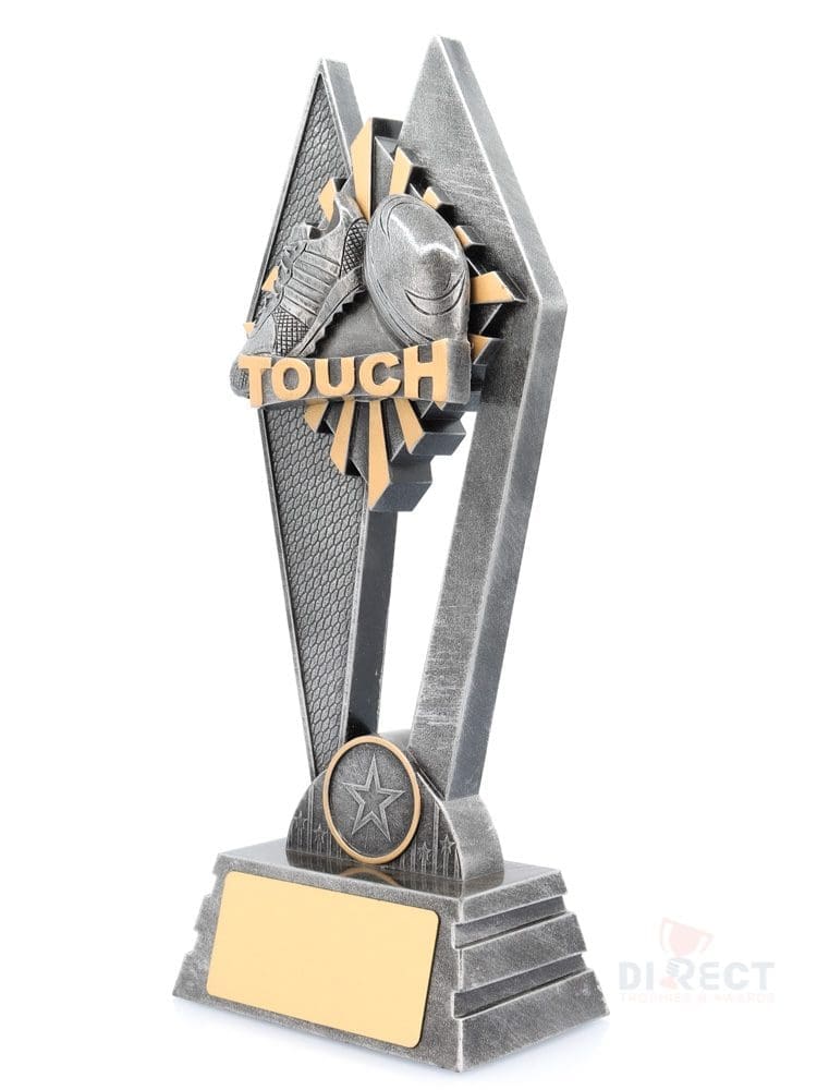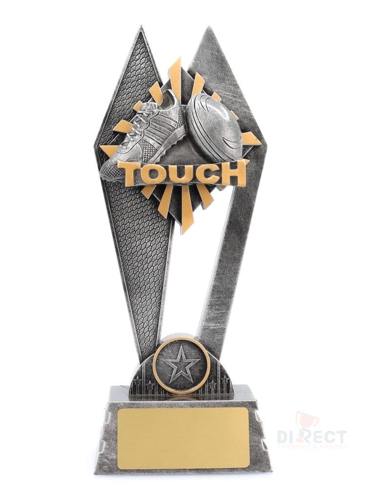 The Peak Series is an innovative trophy series offering super value for such an impressive size range. An elevated design that showcases the elements of Touch football against a vibrant sunray background.