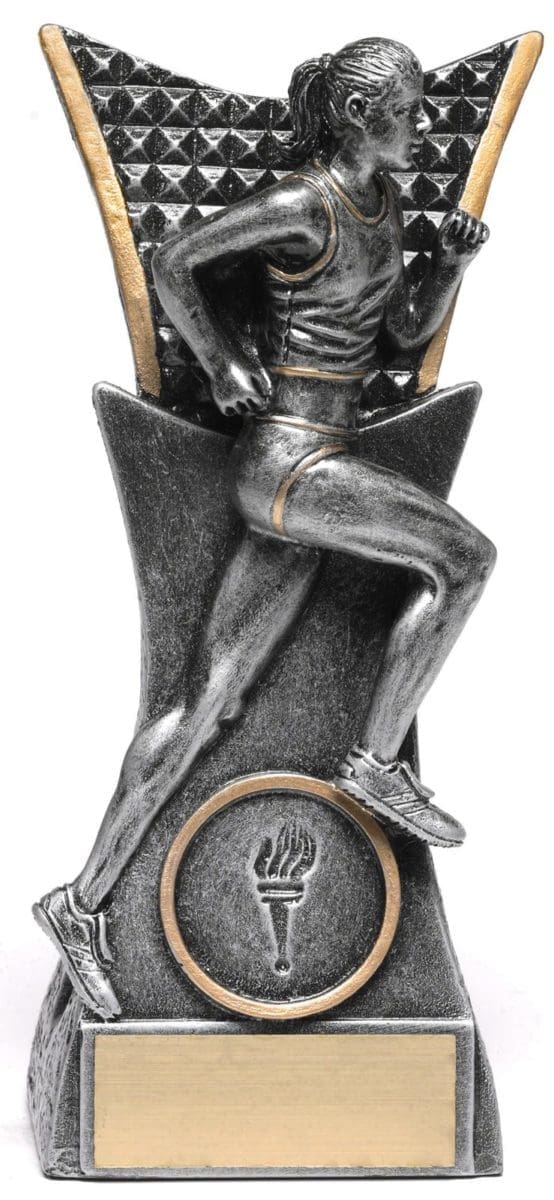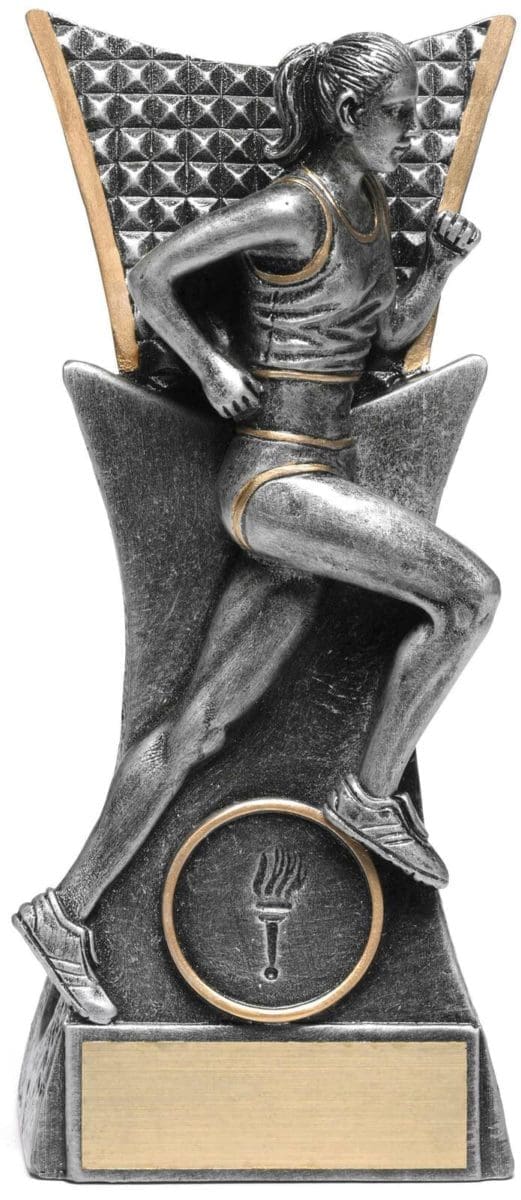 The Vanguard Trophy series, an innovative trophy design showcasing an athlete in motion. This track trophy is finished in silver & gold and available in 3 convenient and effective sizes.