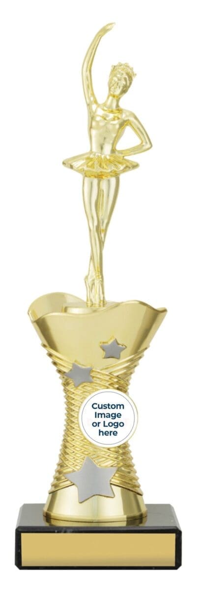 Introducing the Trekaxis Gold Series Trophy showcases a dazzling Gold figurine design with a star pattern and vibrant multi-colored elements. Paired with classic black marble, it exudes elegance. Available to cater to different award requirements. Gold figurine and marble base elevates this trophy award.