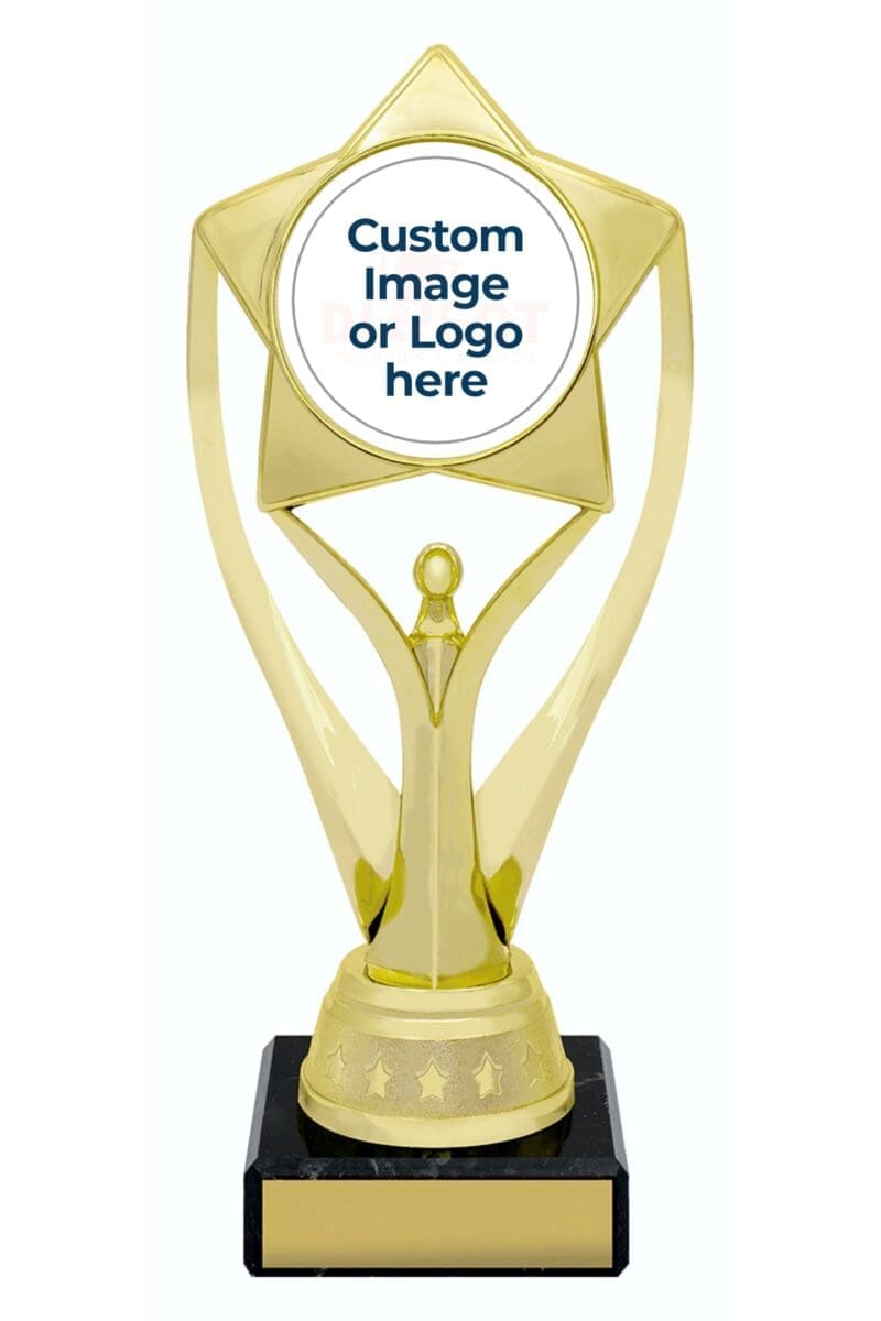Triumph Gold Star Trophy suitable for any event or occasion. Complimentary colour printed logo or image can be showcased on this award with free engraving on base of trophy.