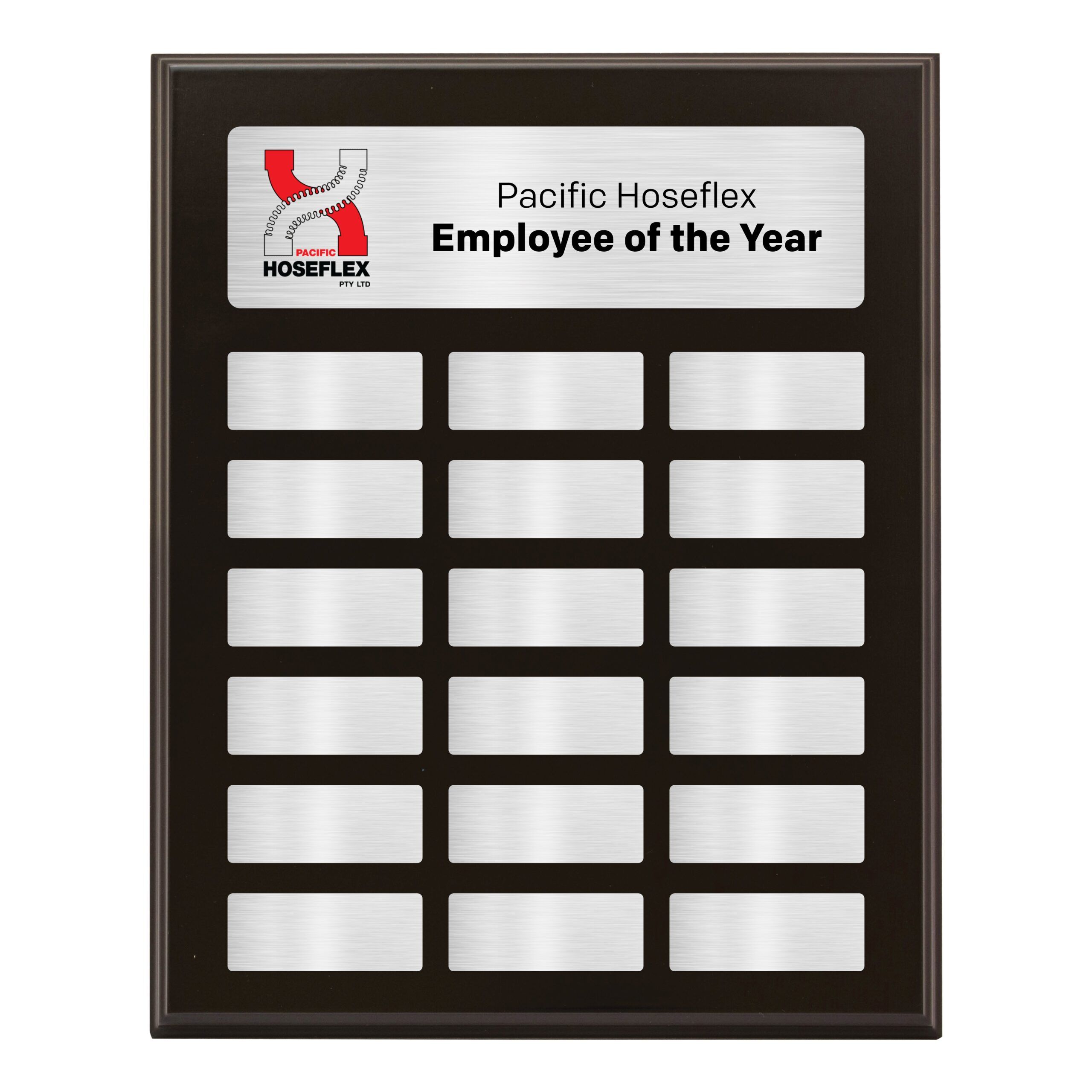 Elegant silver large plaques, ideal as award or perpetual displays. Includes blank plates as shown and a title plate in the price. Engraving on perpetual plates available at an additional cost.