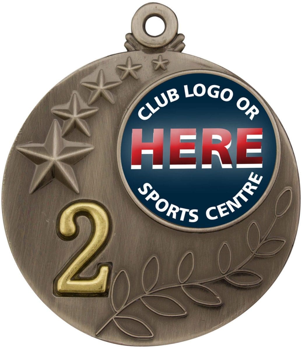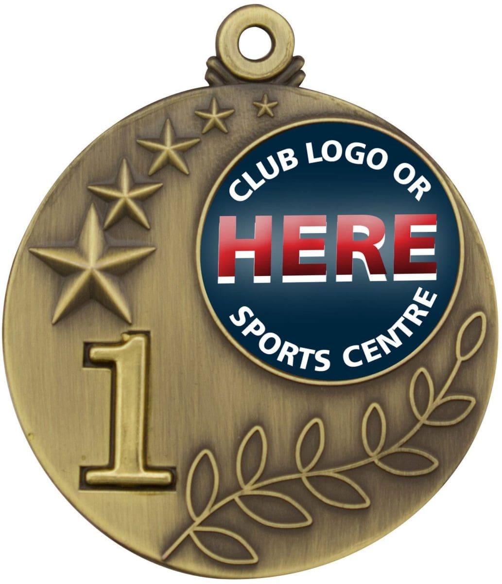 Classic antique medal featuring distinctive two-toned design. Medal a fantastic option with a winners cup inspired design. Ribbons available in all colours and medal boxes to suit.