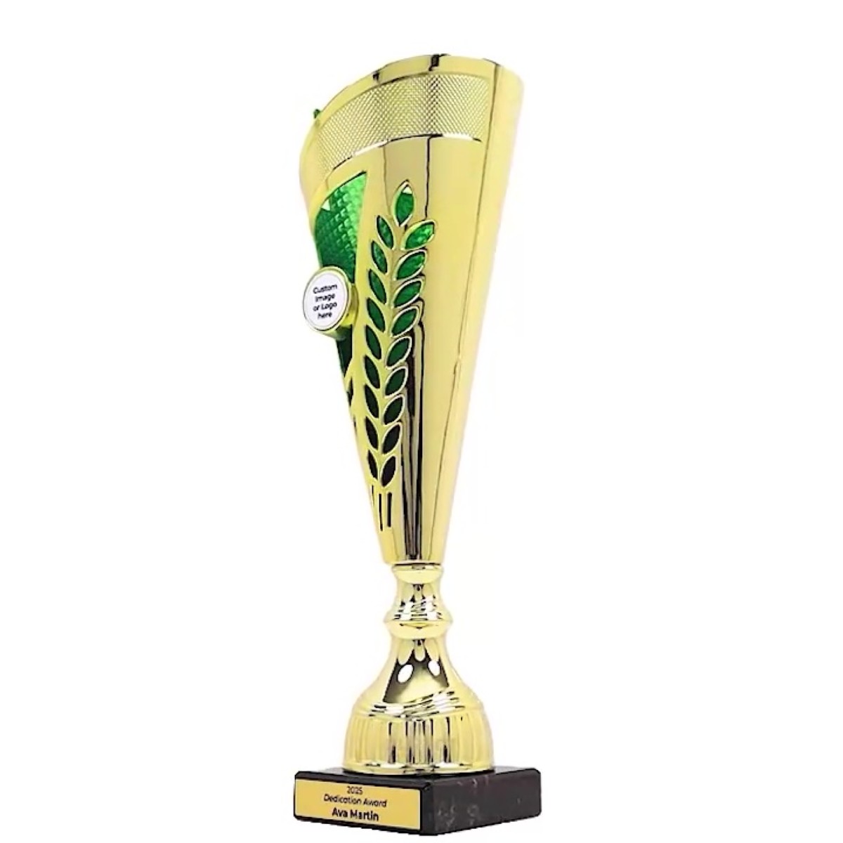 A striking series showcasing a unique design and vivid colour options, the Vastel Trophy Cup comes in various sizes to suit any event. It offers a prominent space to feature your custom logo or image, with complimentary laser engraving included for a personalised and polished presentation.