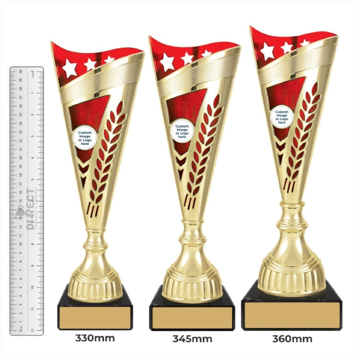 A striking series showcasing a unique design and vivid colour options, the Vastel Trophy Cup comes in various sizes to suit any event. It offers a prominent space to feature your custom logo or image, with complimentary laser engraving included for a personalised and polished presentation.