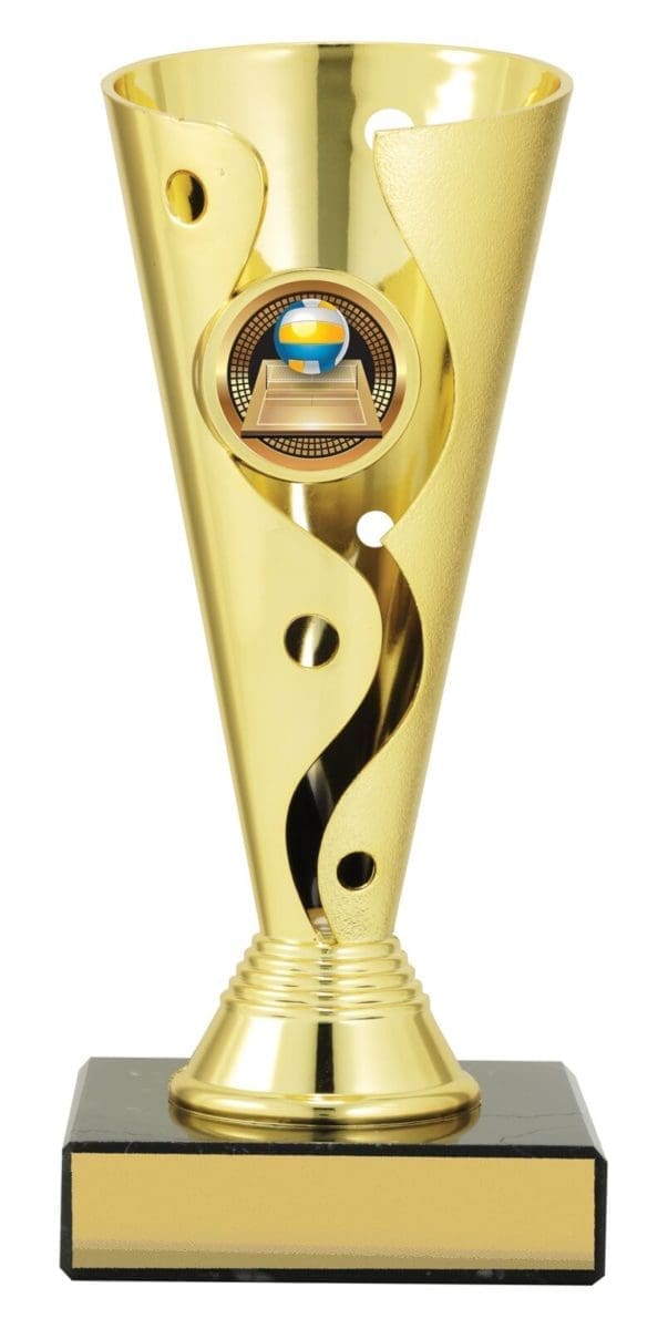 Carnival cups present a distinctive cup style trophy with attractive 3D design – on classic black marble base for your engraving – with brightly coloured inserts. Available in 3 sizes.
