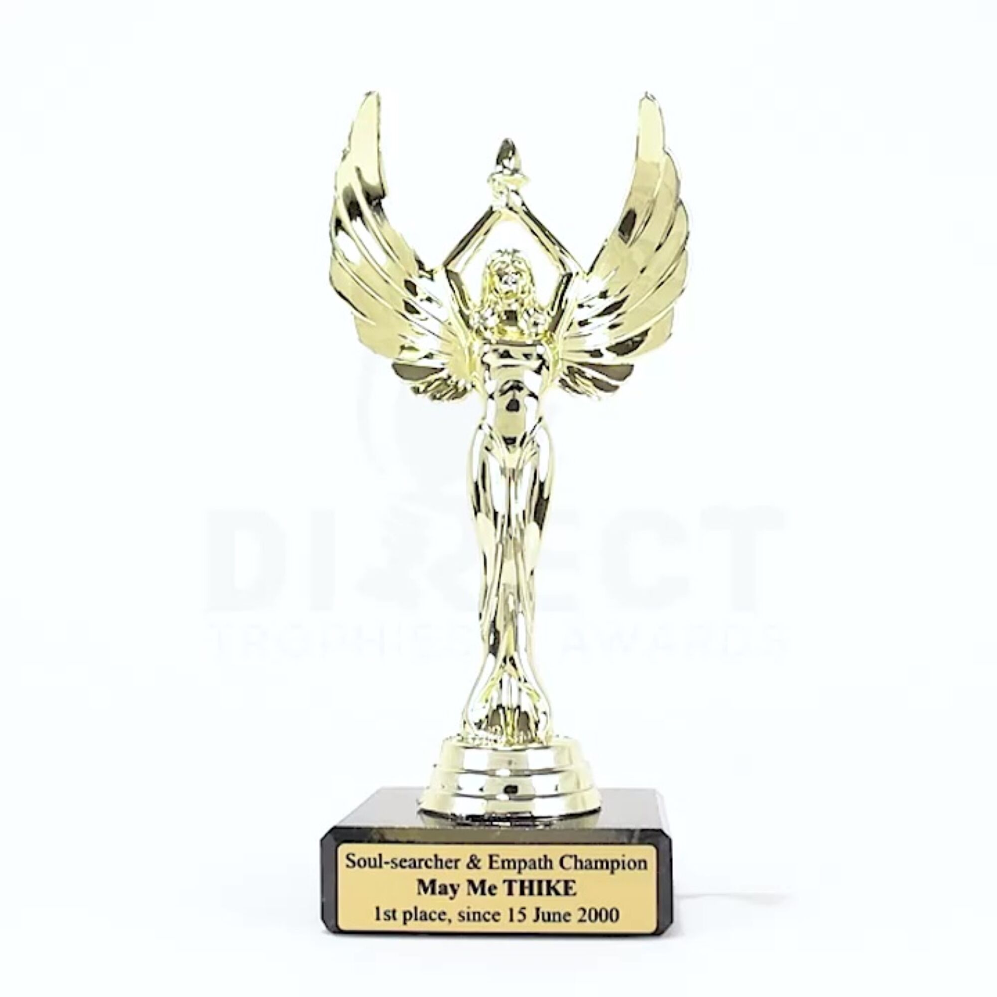 Introducing the Winged Goddess Achievement Trophy, an affordable and symbolic award for recognizing top performers. This trophy embodies achievement and success, making it the perfect choice for your outstanding individuals. Customize it with free laser engraving to add a personal touch. Celebrate excellence with the Winged Goddess Achievement Trophy.
