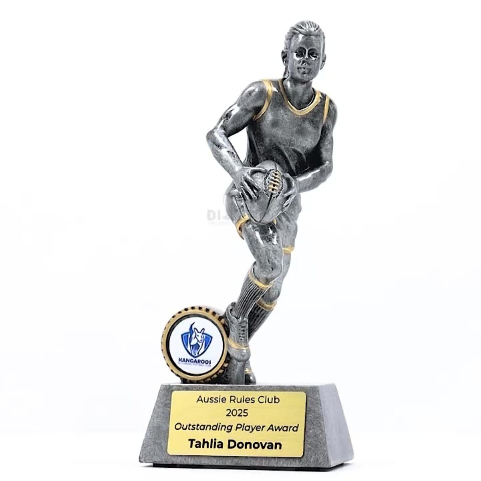 Zeta Player Series – Featuring an action-packed player design in antique silver with gold highlights, the Zeta Series offers a dynamic award option. Includes space for your custom logo, available in various sizes, with complimentary laser engraving.