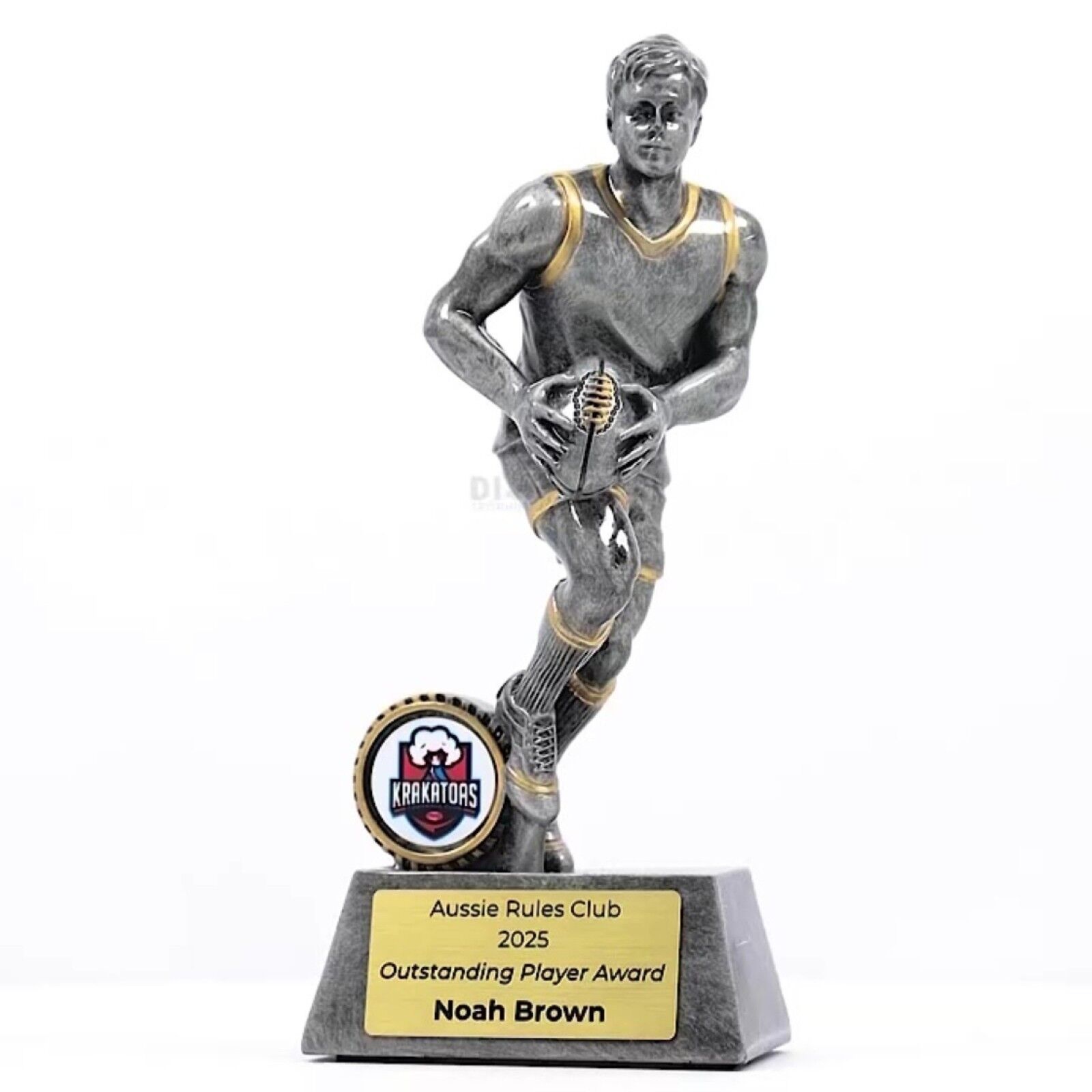 Zeta Player Series – Featuring an action-packed player design in antique silver with gold highlights, the Zeta Series offers a dynamic award option. Includes space for your custom logo, available in various sizes, with complimentary laser engraving.