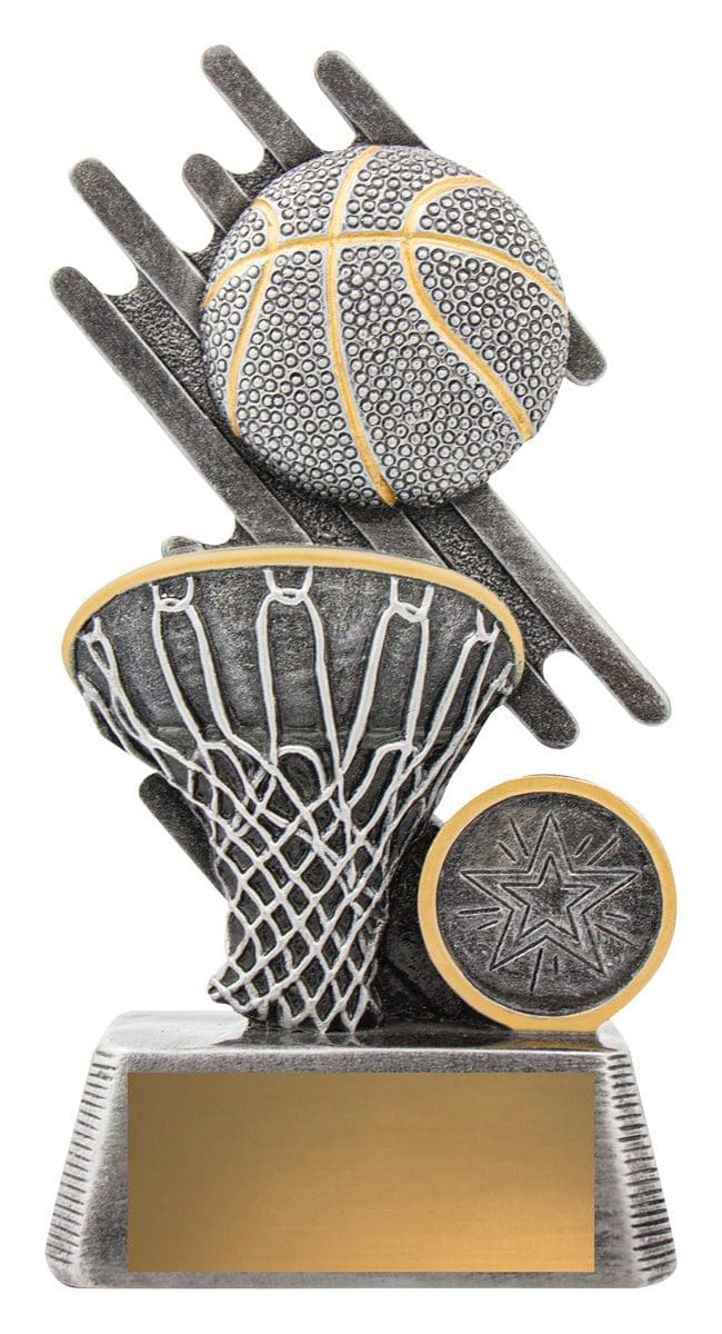 Zoom series of basketball trophies celebrates iconic elements of the sport over multiple sizes – ideal for both participation awards and best playing awards.