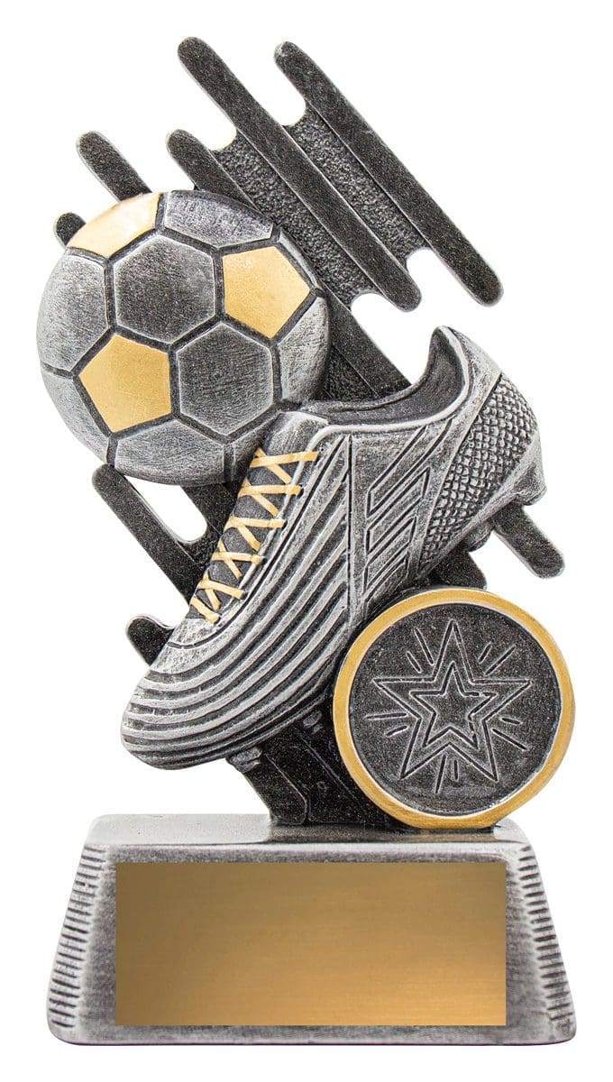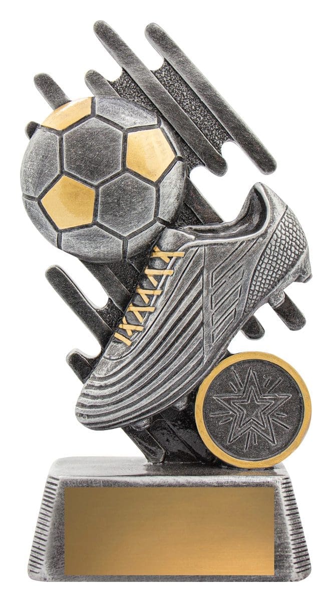 Zoom series of football trophies celebrates iconic elements of the sport over multiple sizes – ideal for both participation awards and best playing awards.