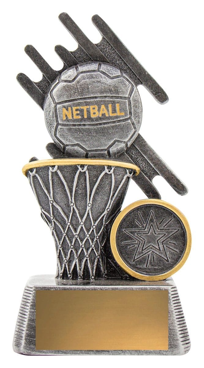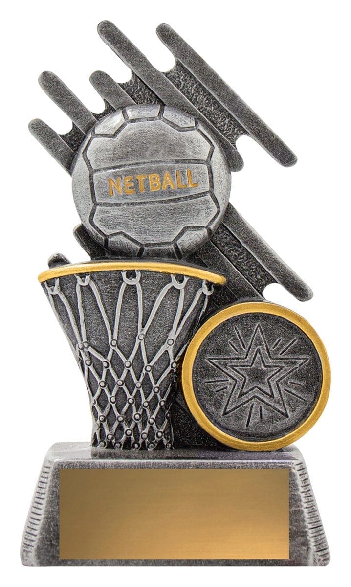 Zoom series of netball trophies celebrates iconic elements of the sport over multiple sizes – ideal for both participation awards and best playing awards.